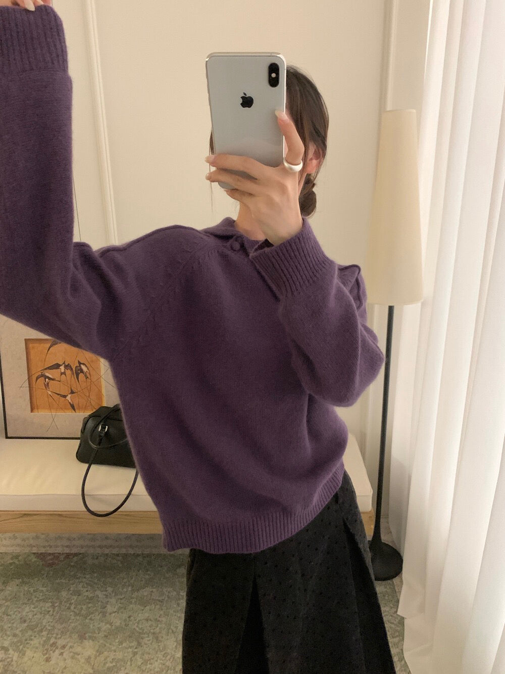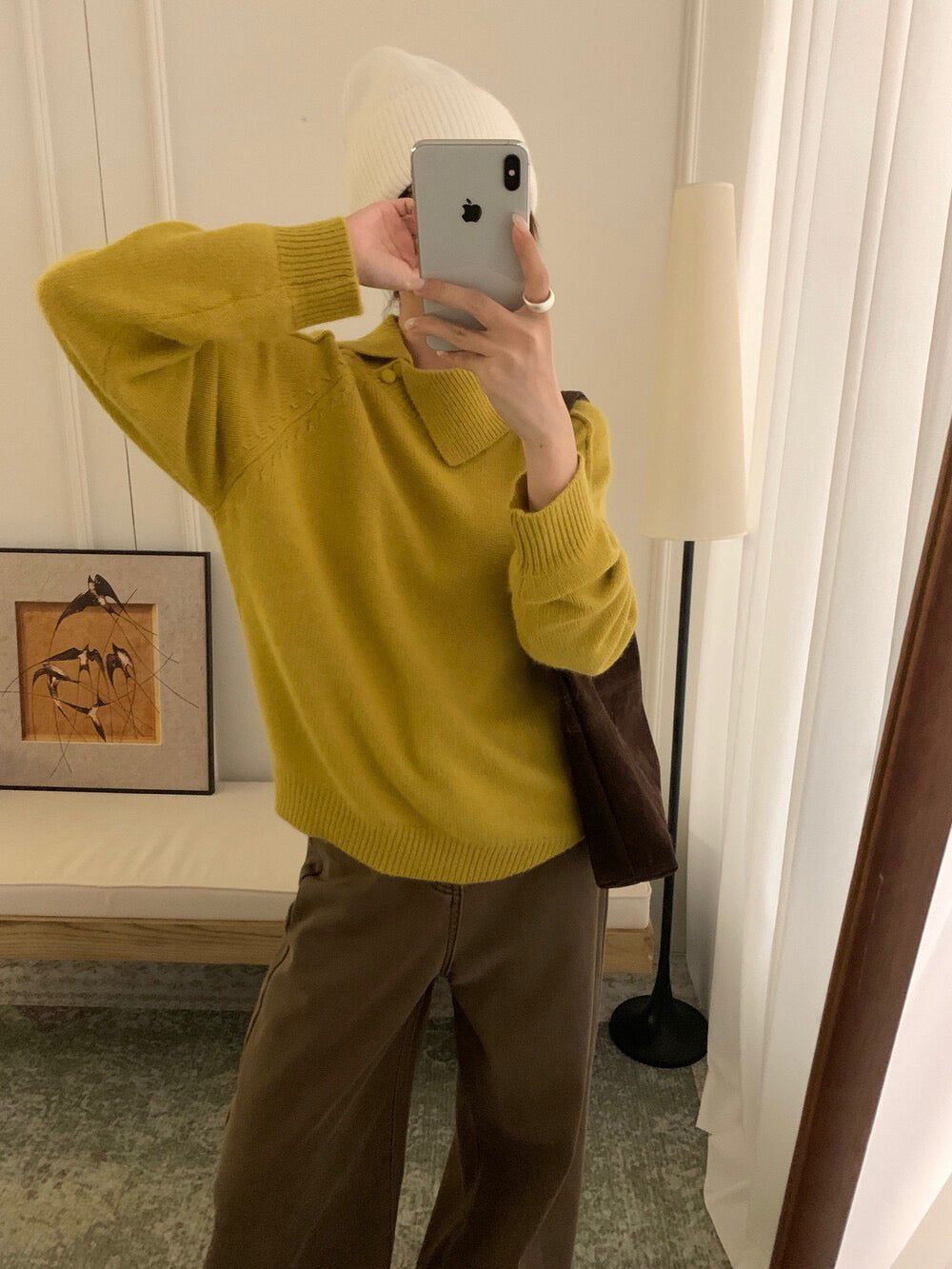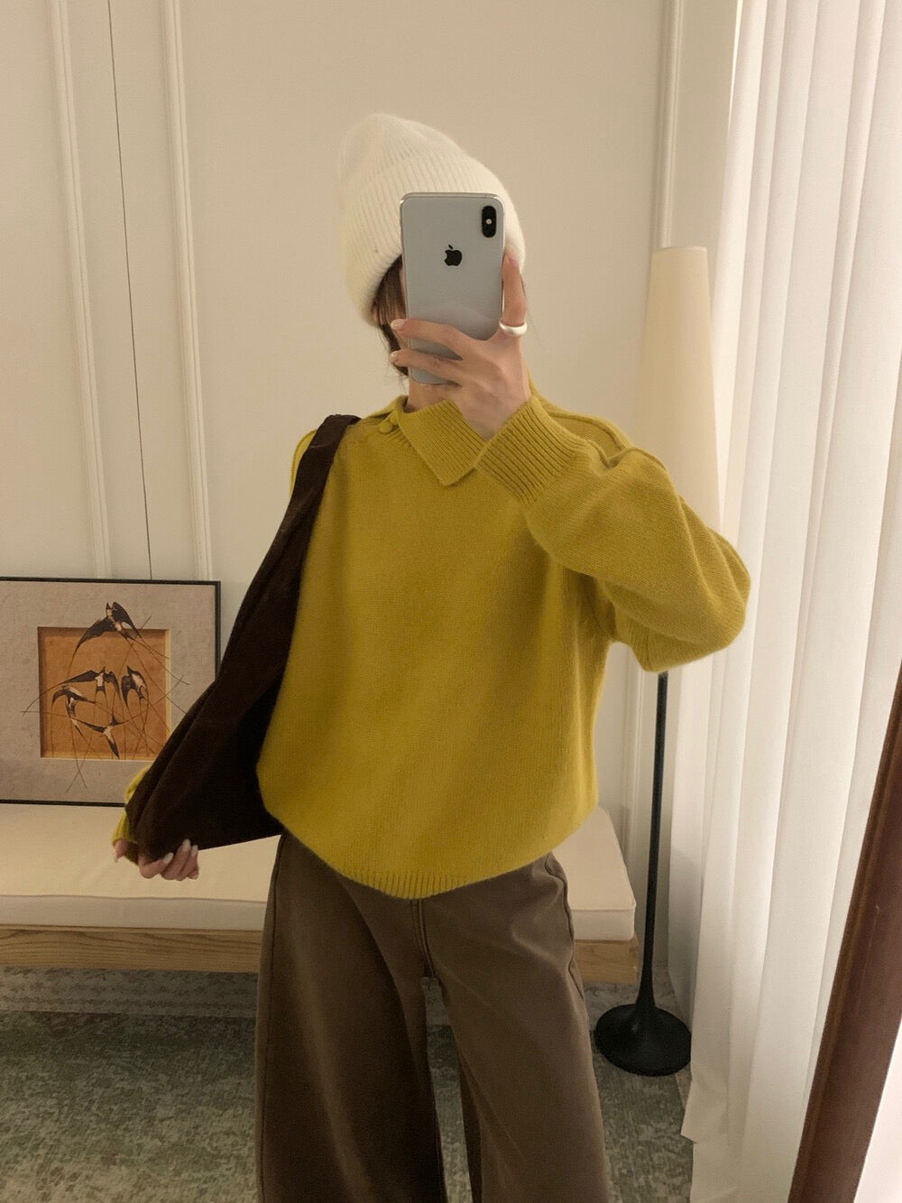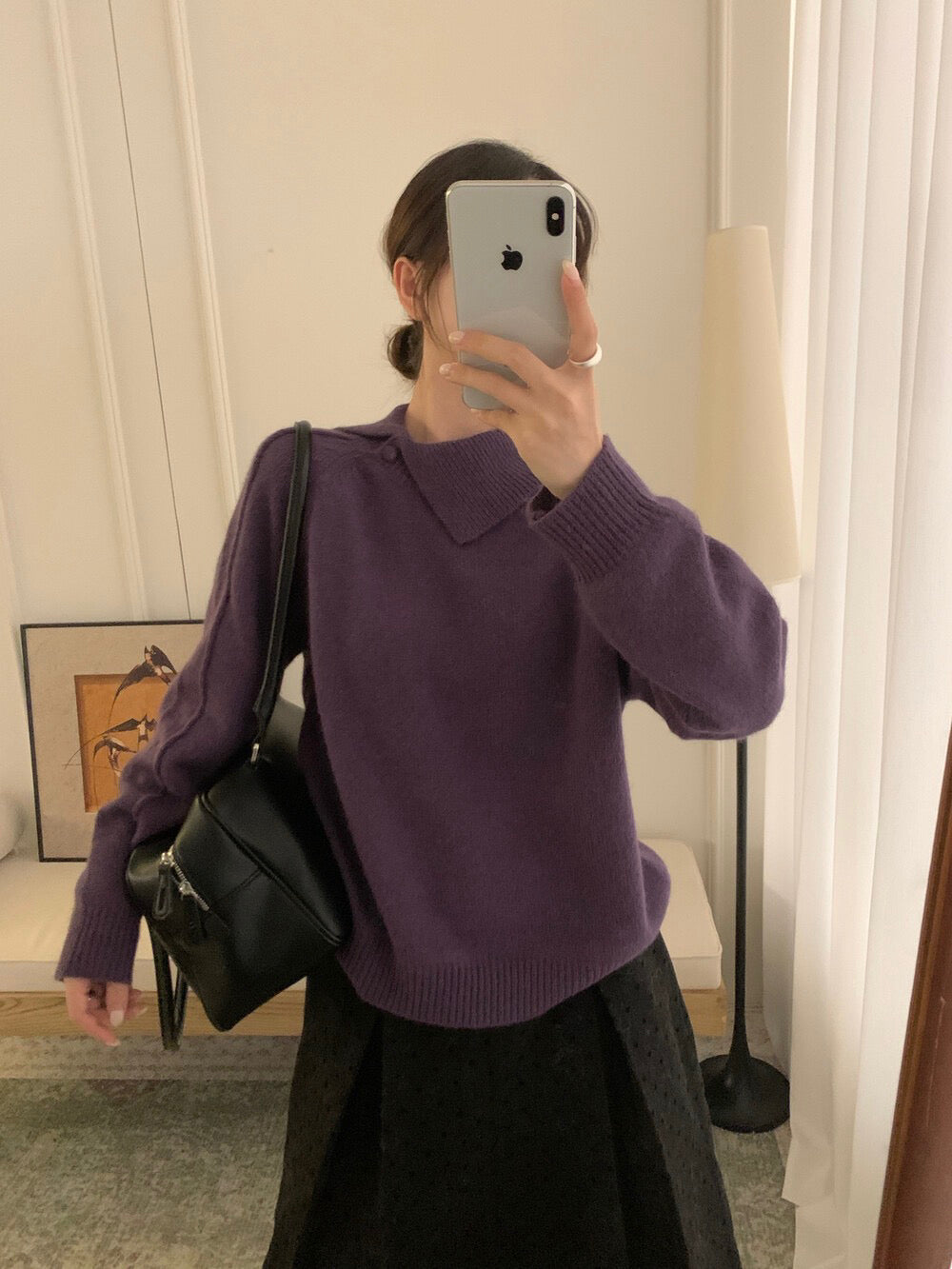 // 30%綿羊毛設計感不規則翻領毛衣