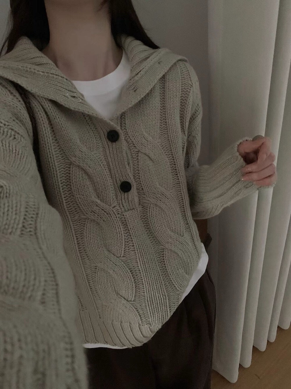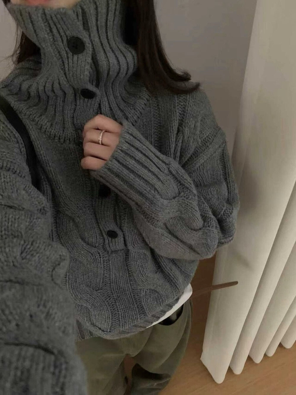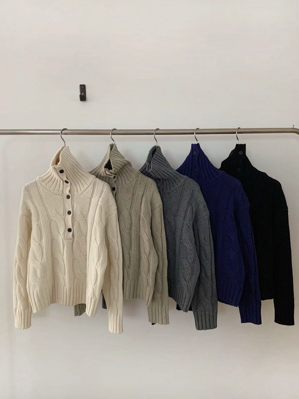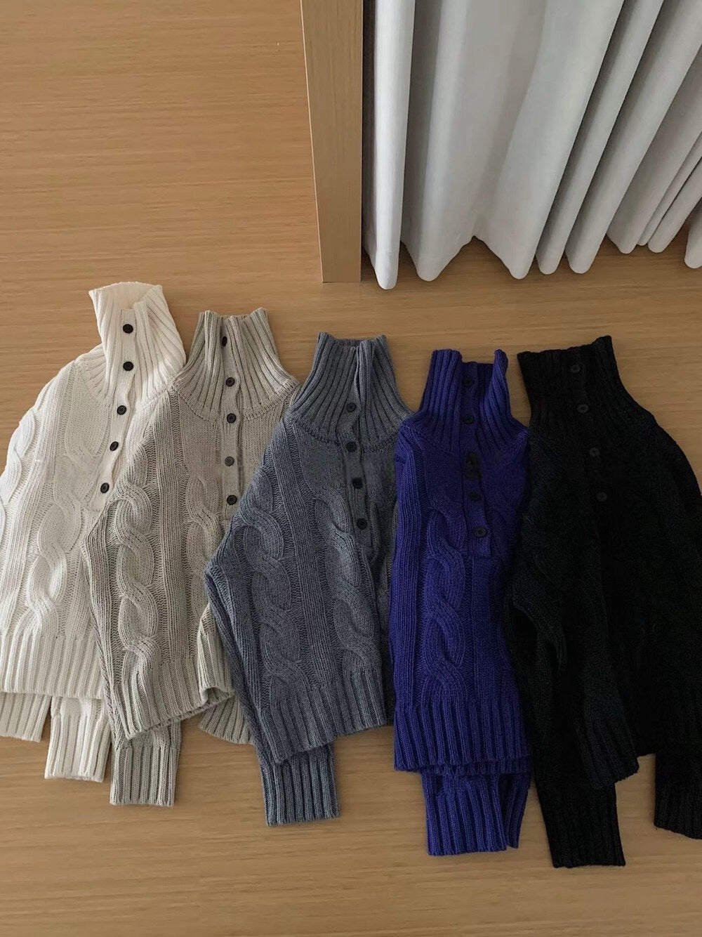 // 30%羊毛可立領鈕扣麻花毛衣