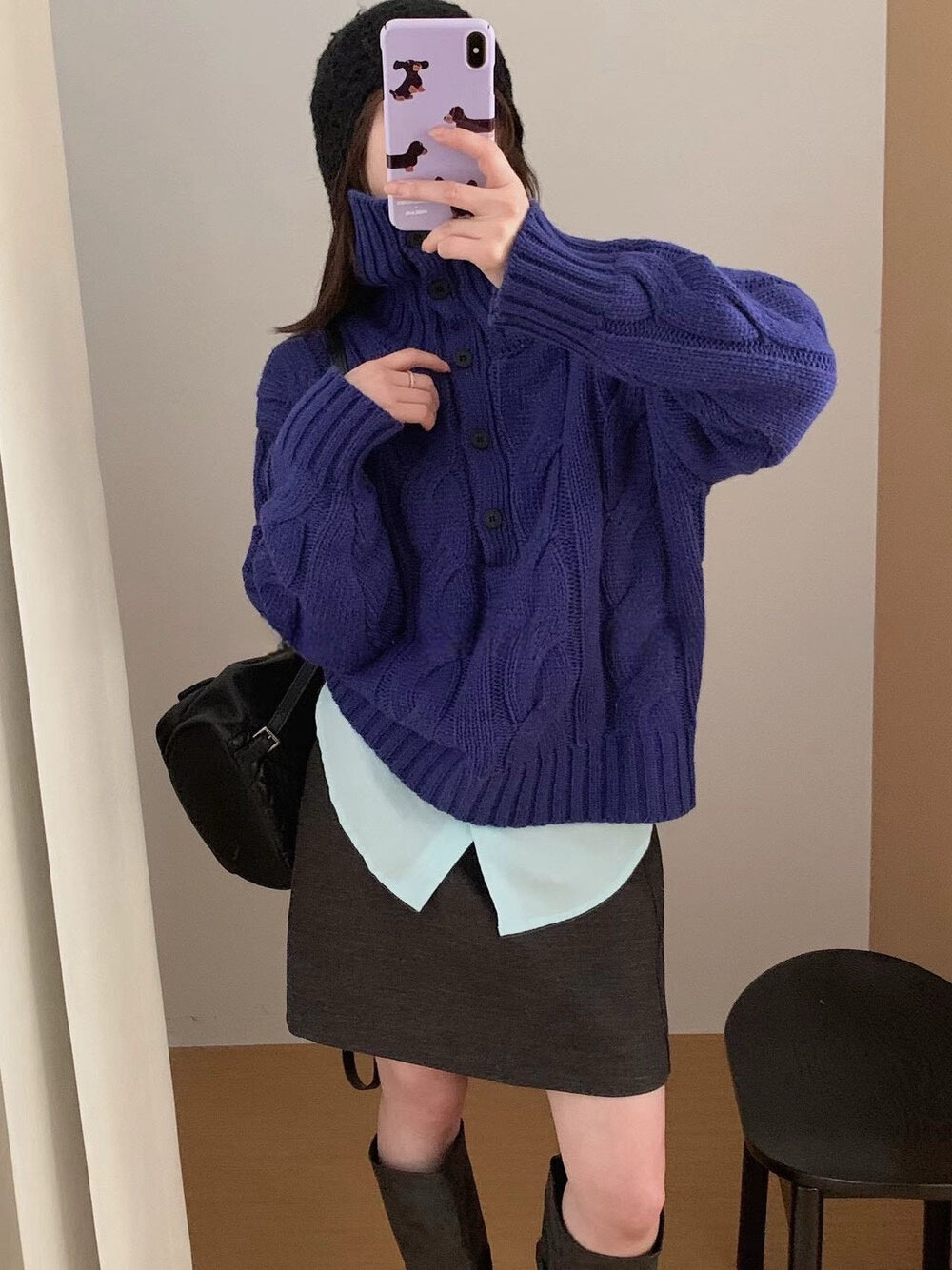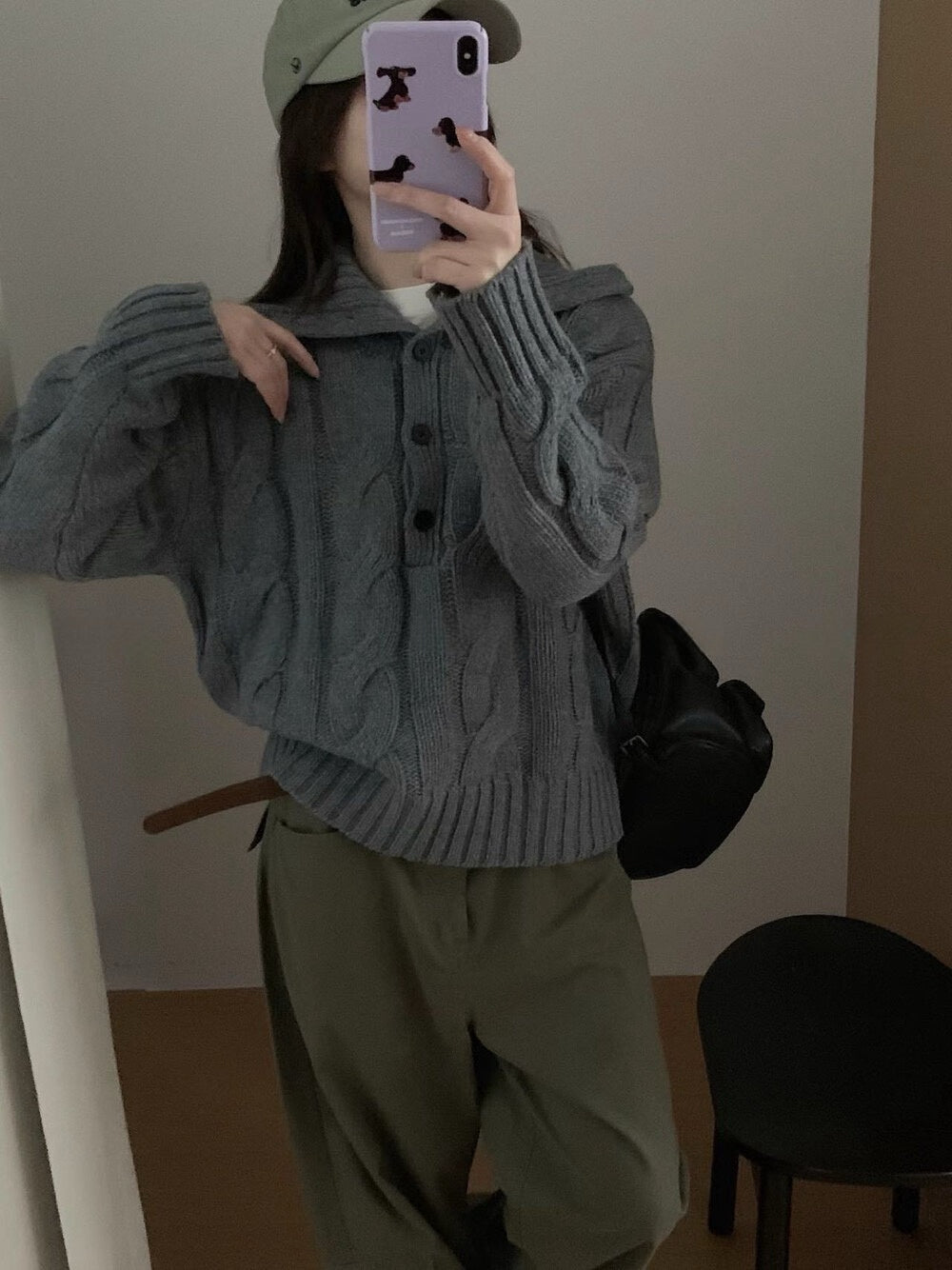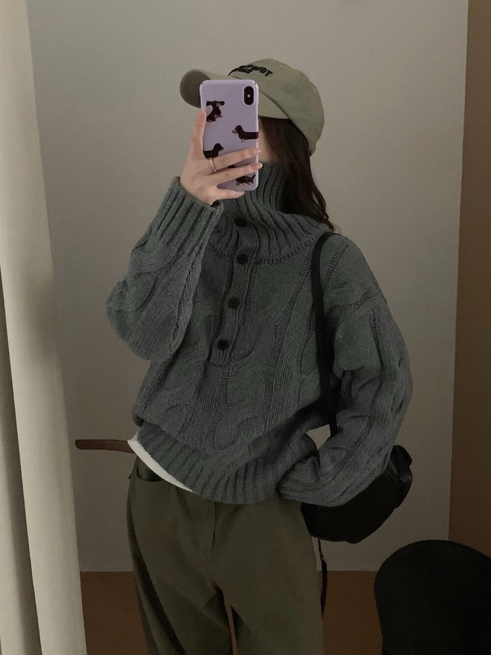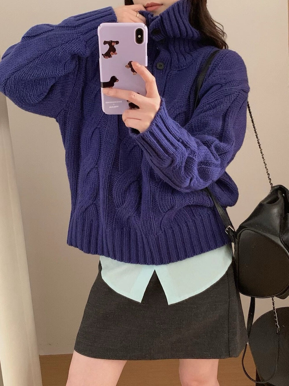 // 30%羊毛可立領鈕扣麻花毛衣