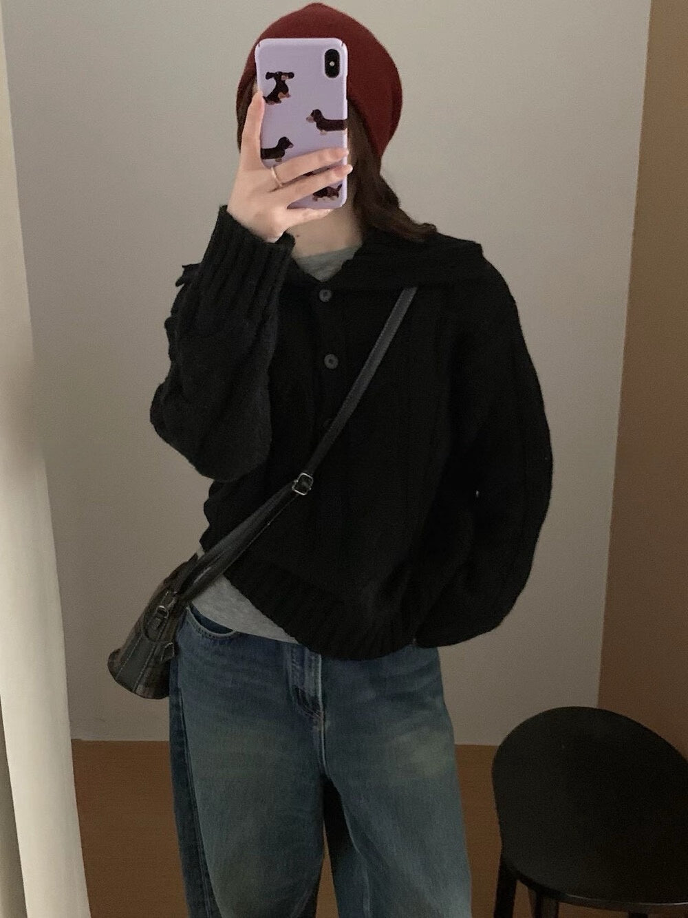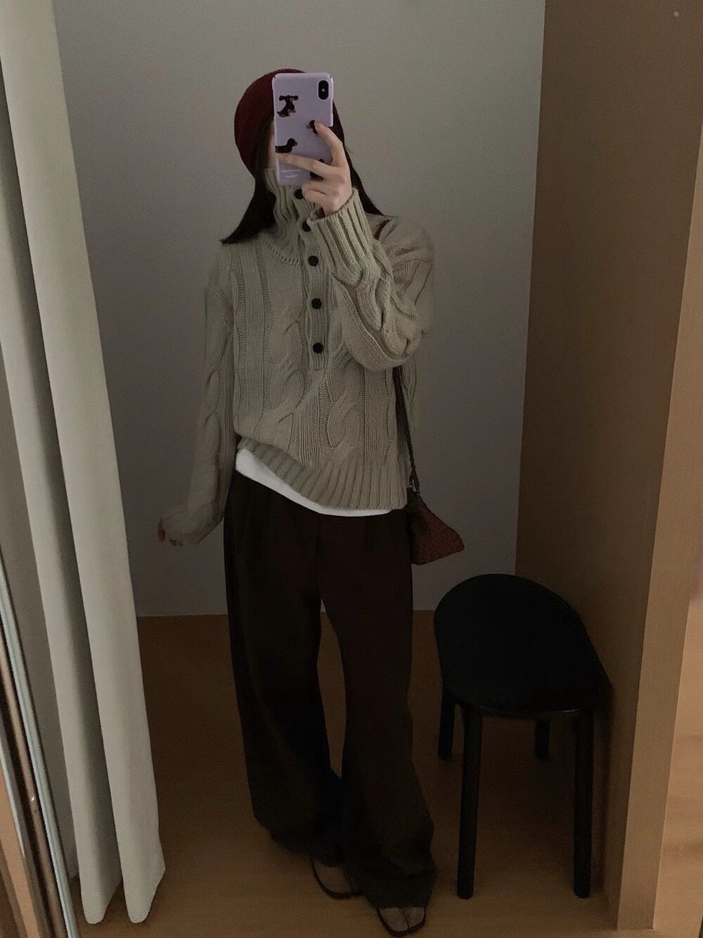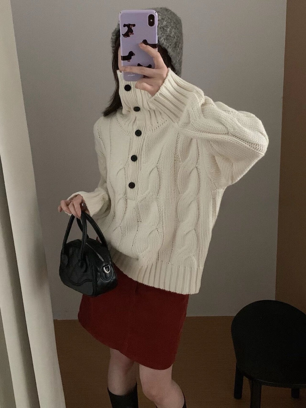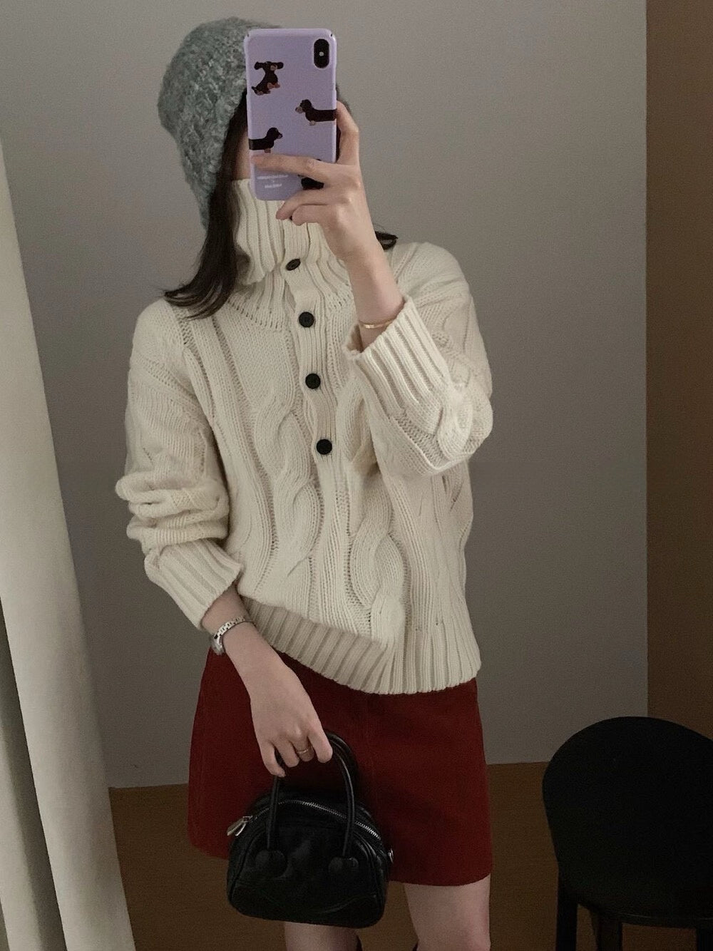 // 30%羊毛可立領鈕扣麻花毛衣