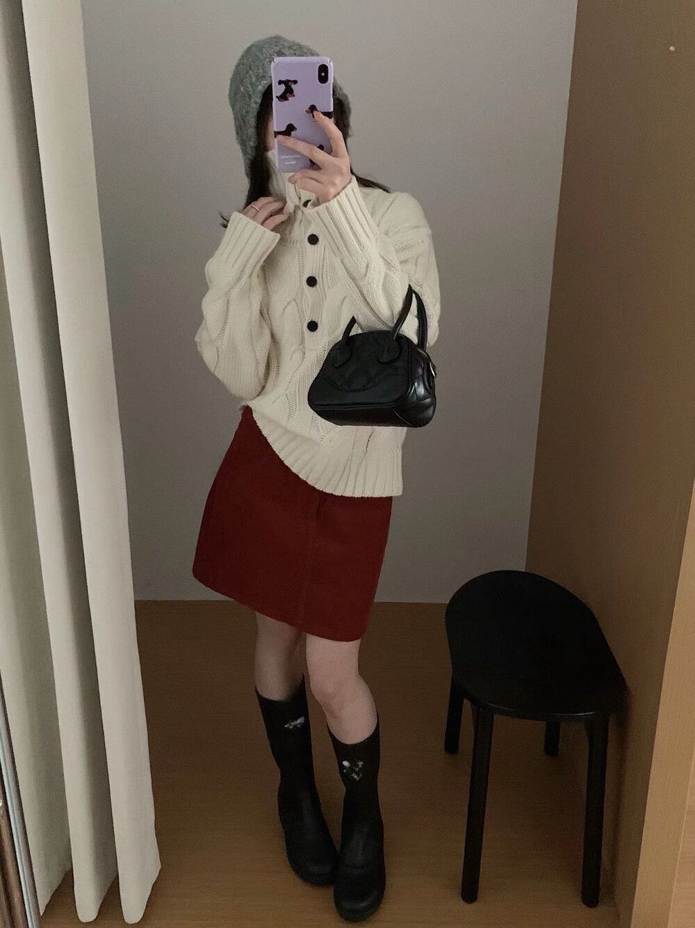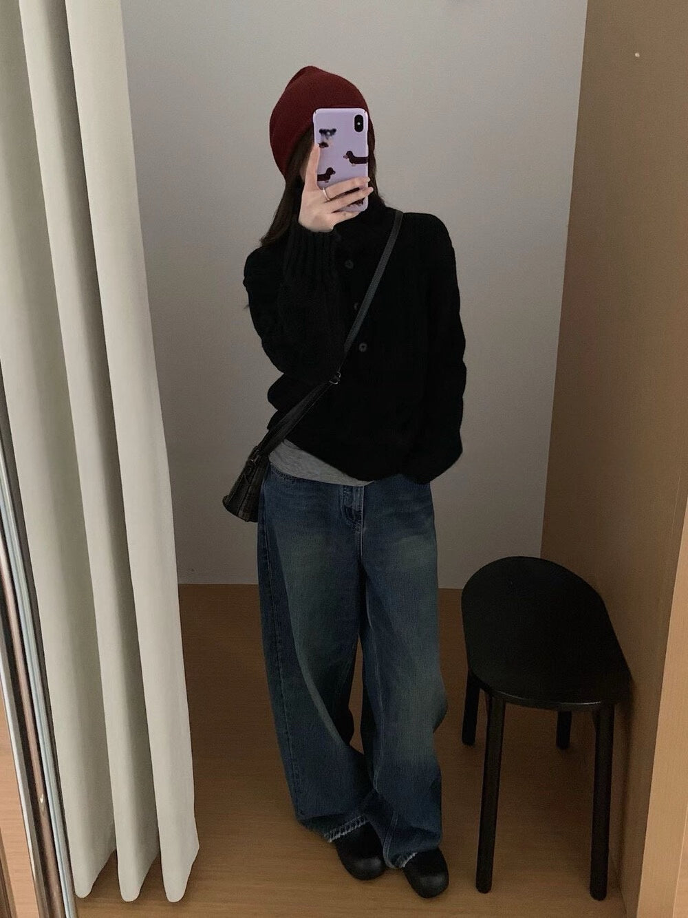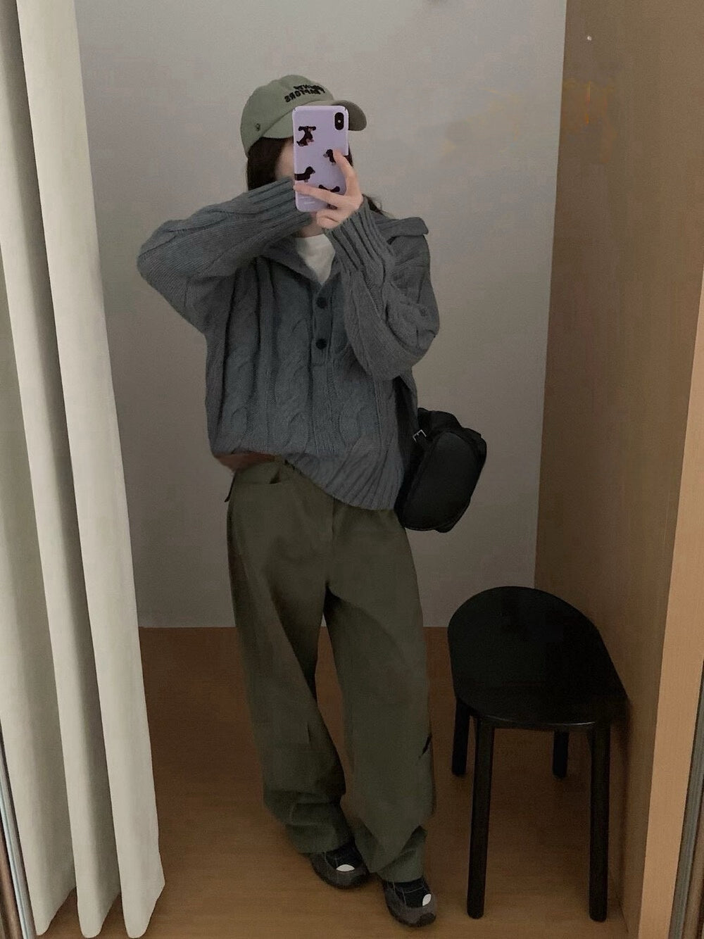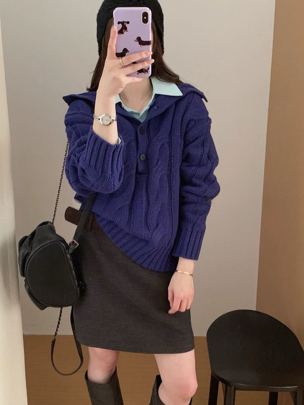 // 30%羊毛可立領鈕扣麻花毛衣