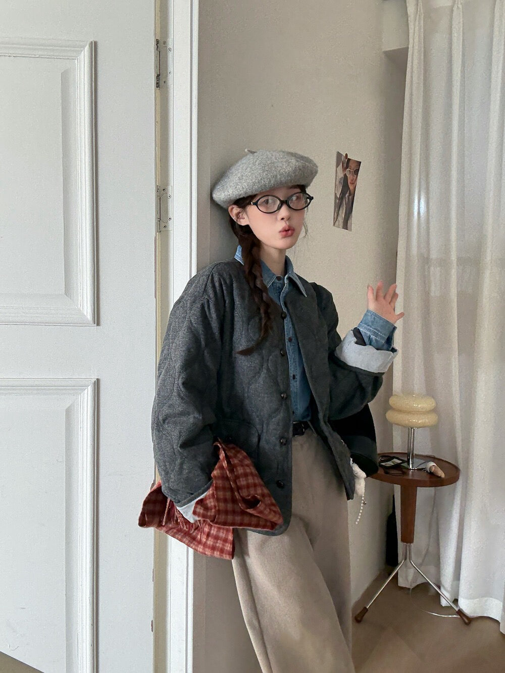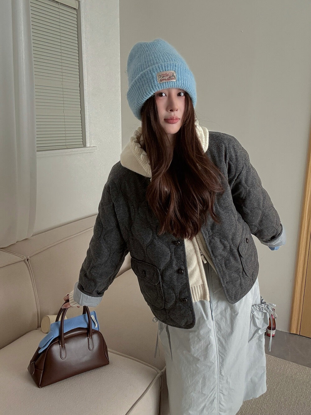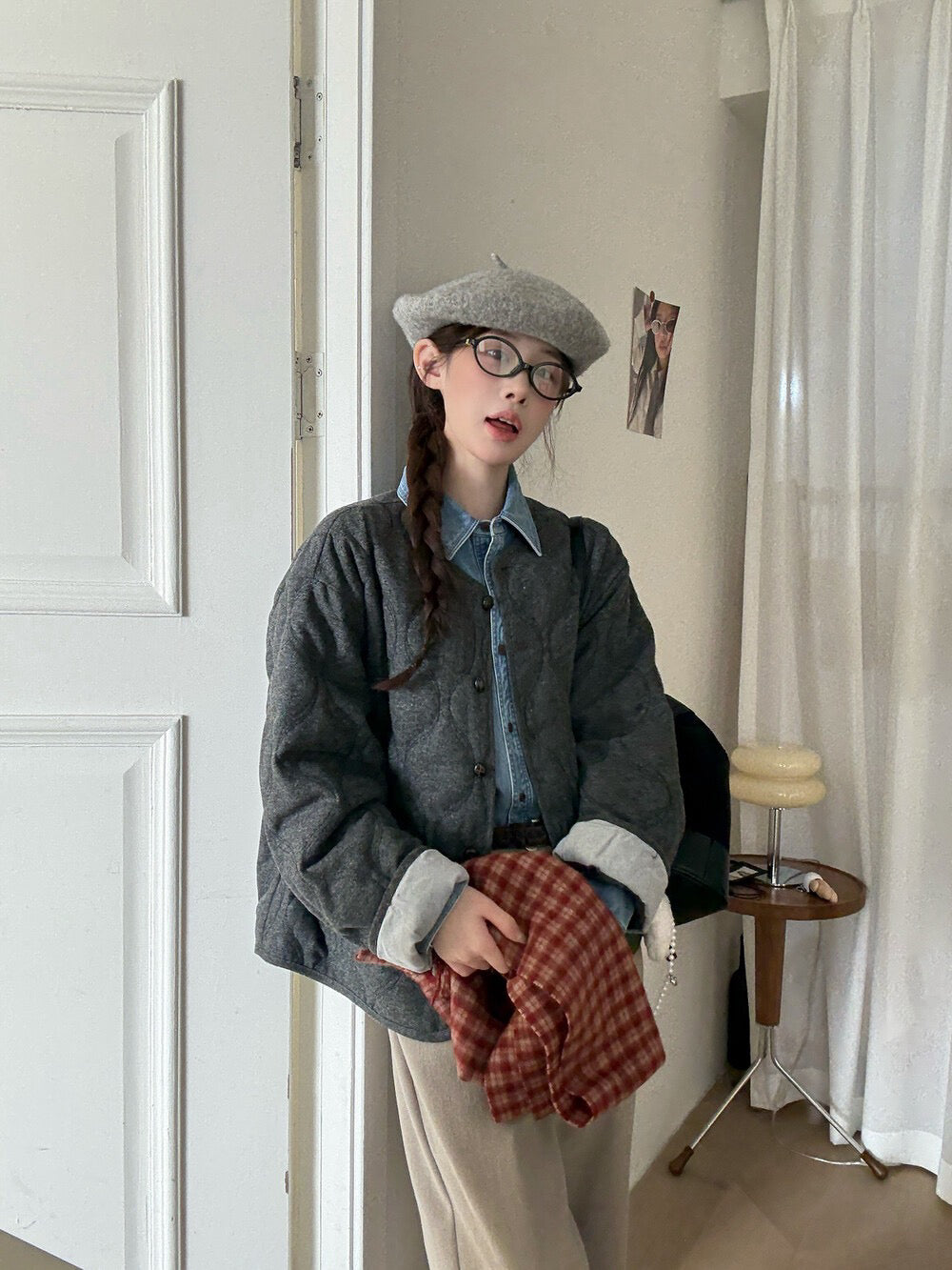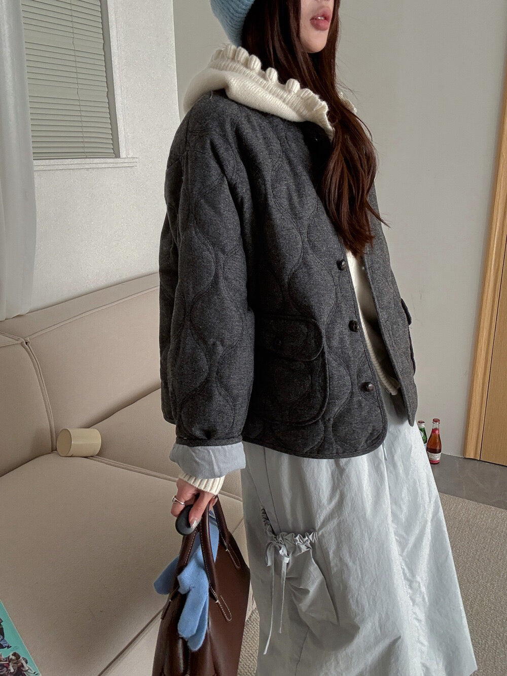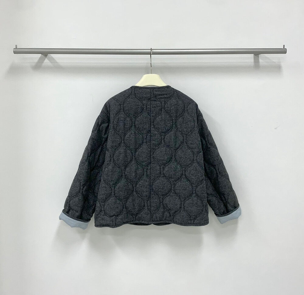 // 30%羊毛袖口拼接燈芯絨菱格夾棉外套