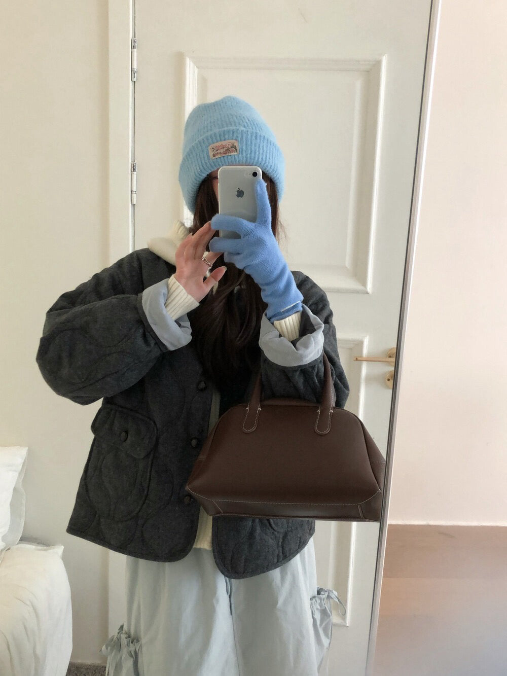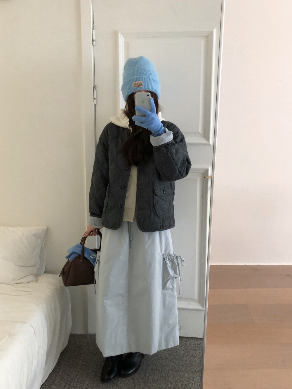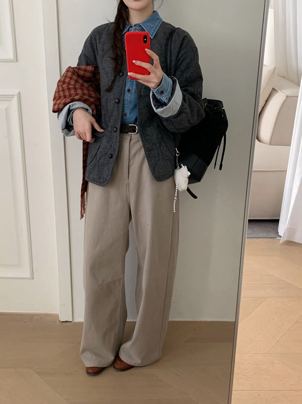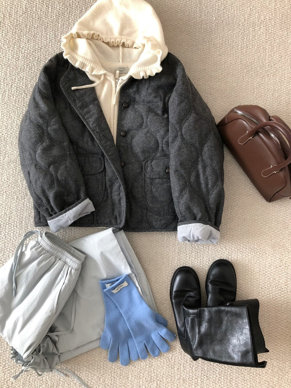 // 30%羊毛袖口拼接燈芯絨菱格夾棉外套