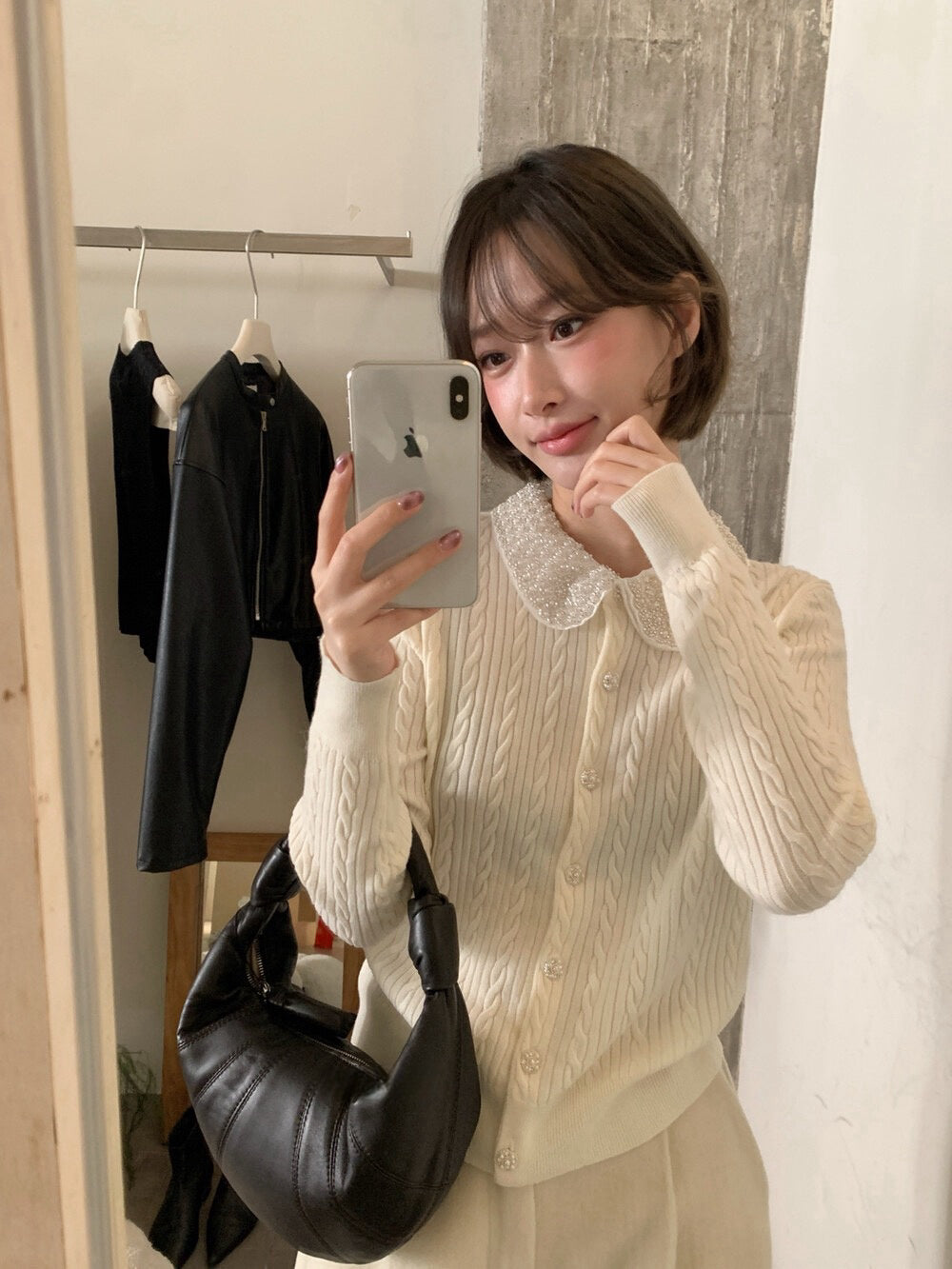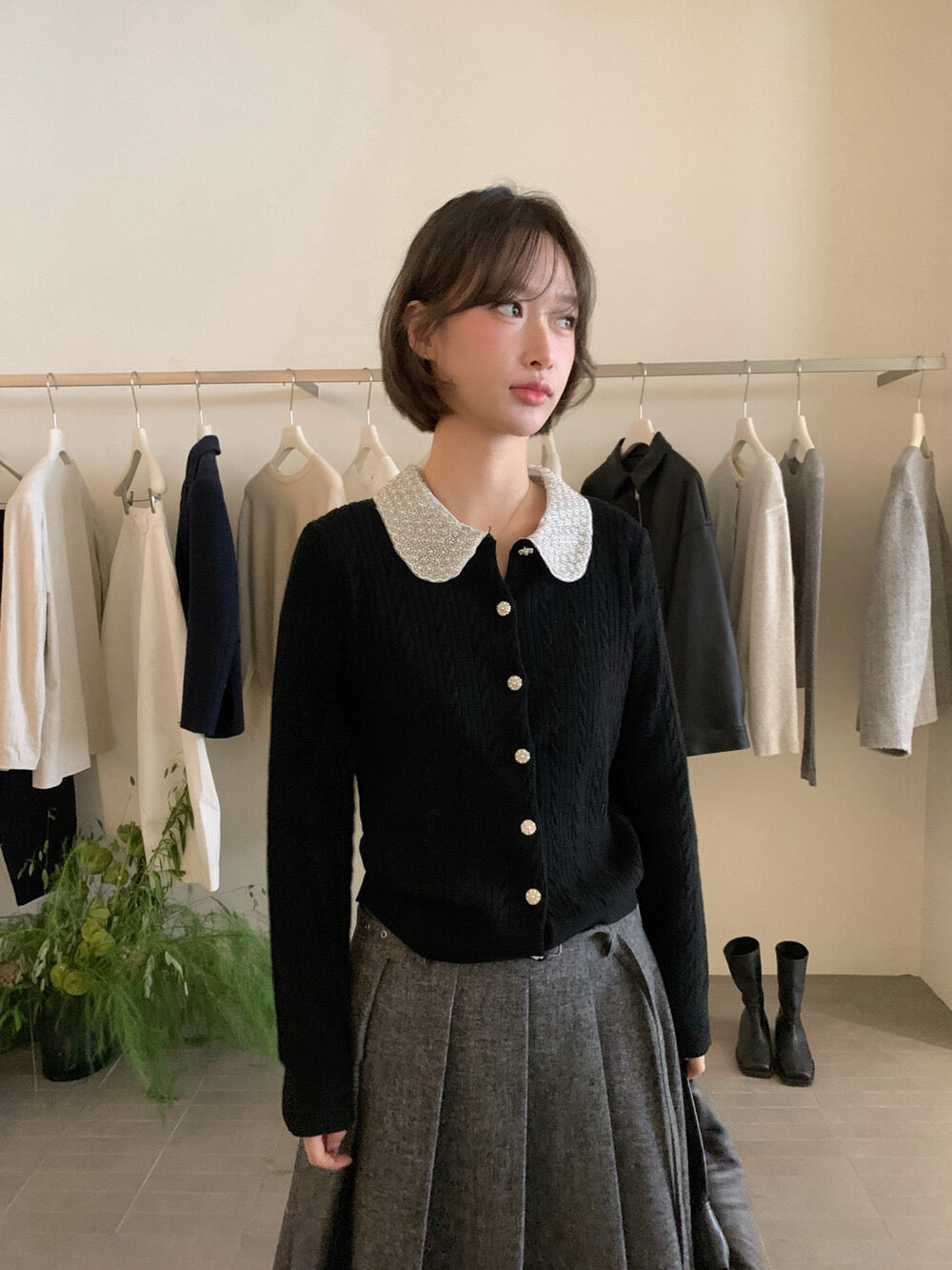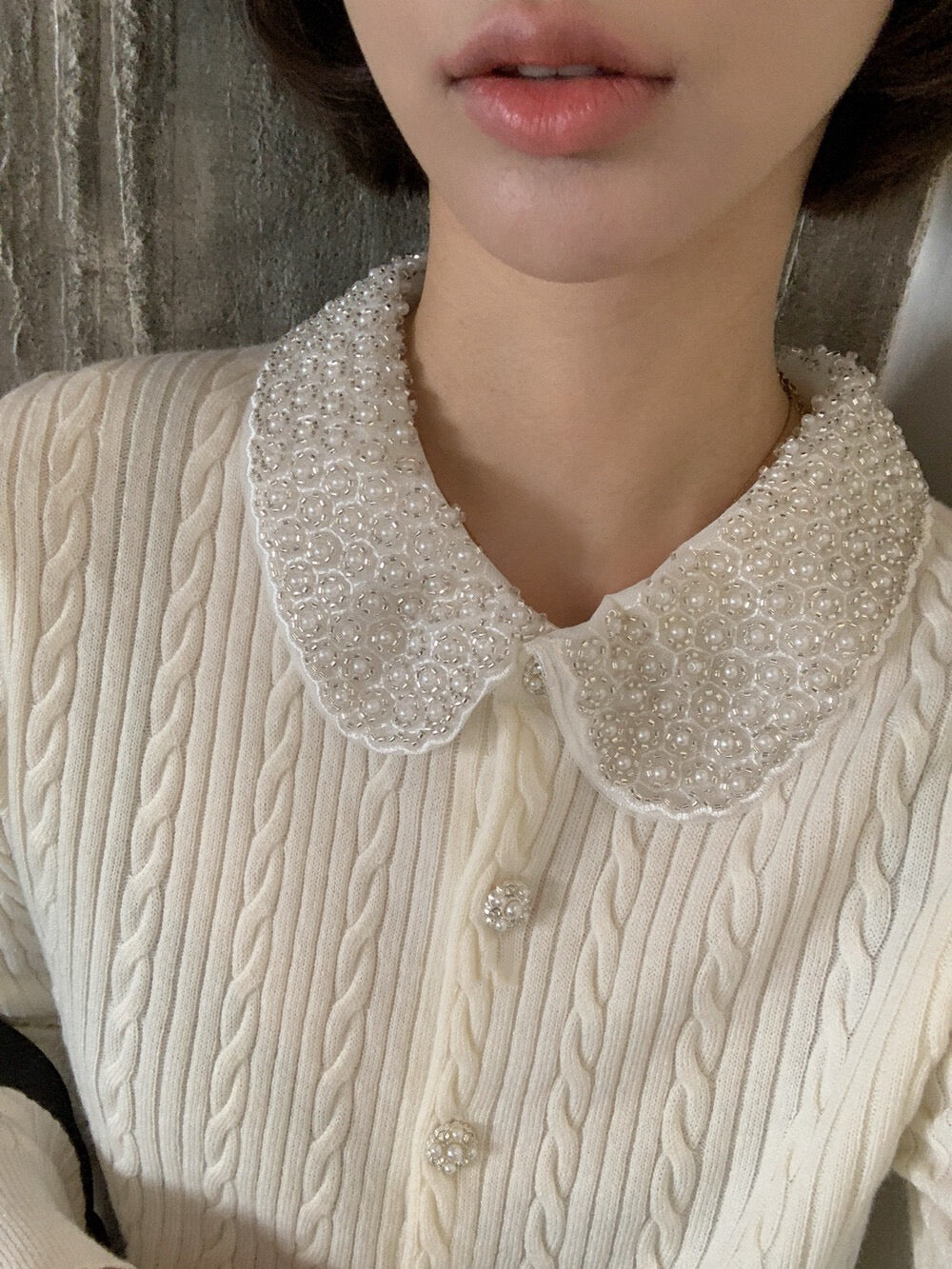 // 33%羊毛重工珍珠領麻花NT