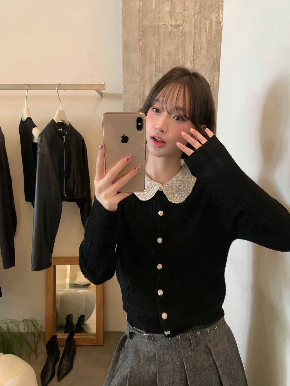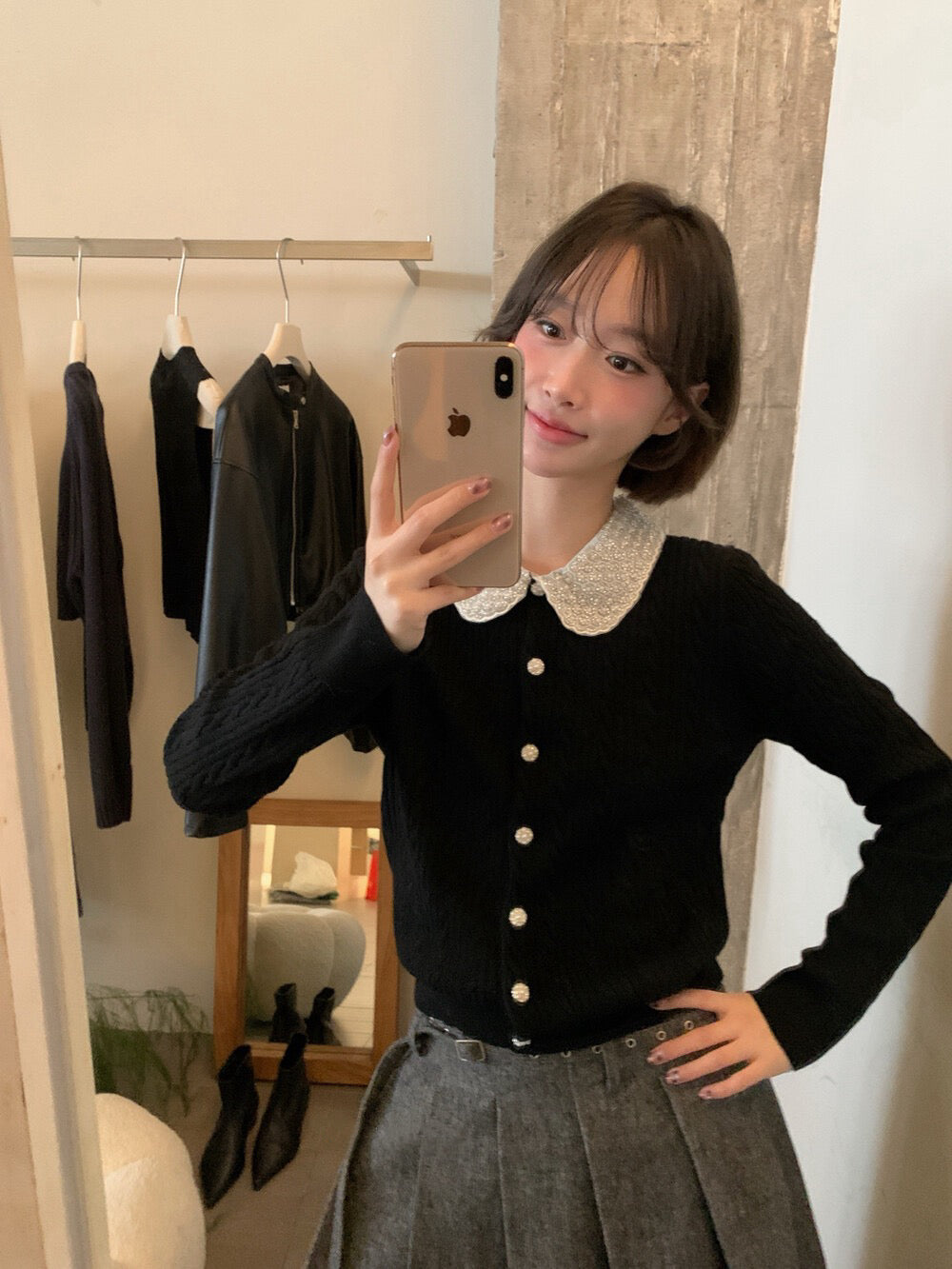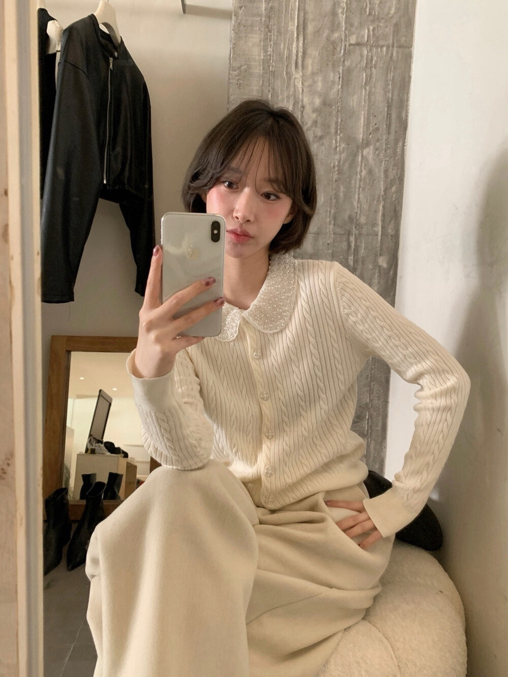 // 33%羊毛重工珍珠領麻花NT
