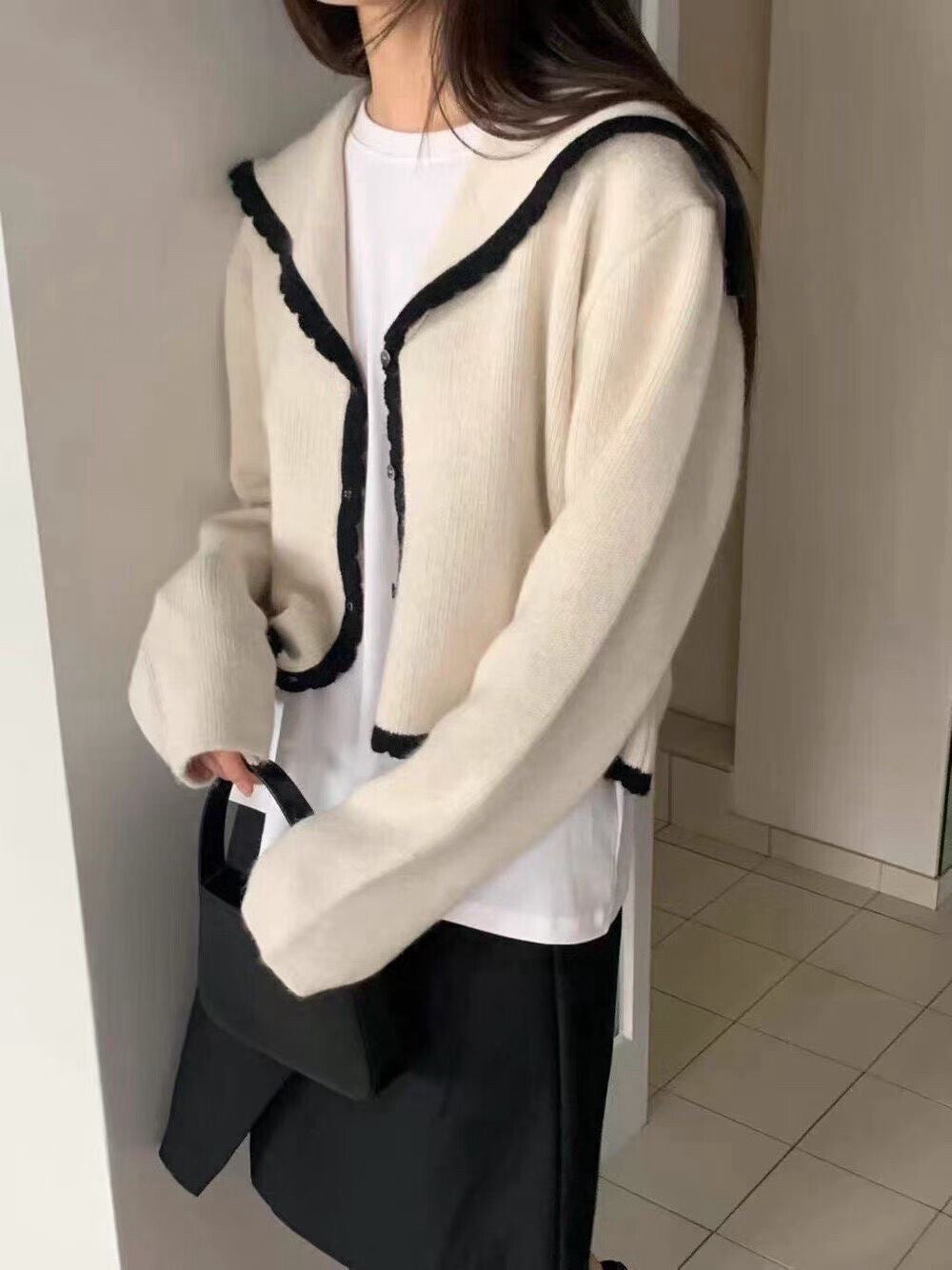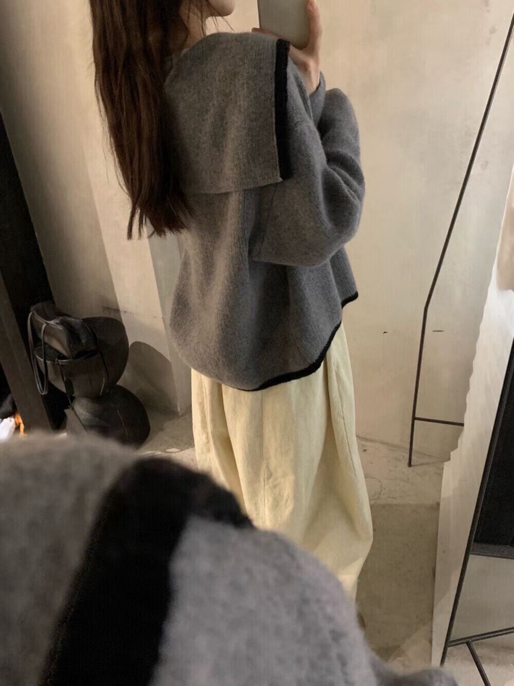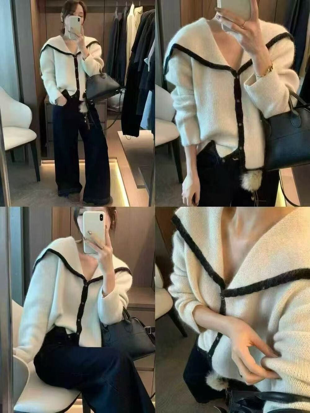 // 40%兔毛+20%綿羊毛撞色邊大翻領CD
