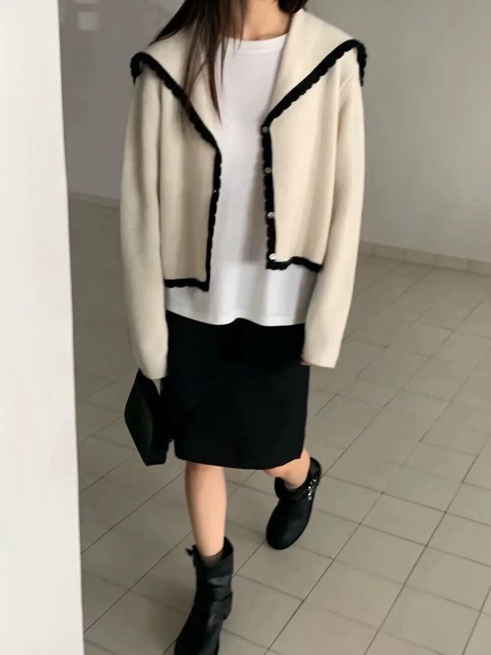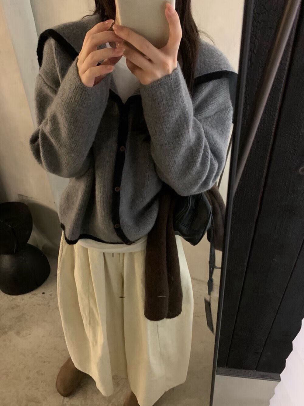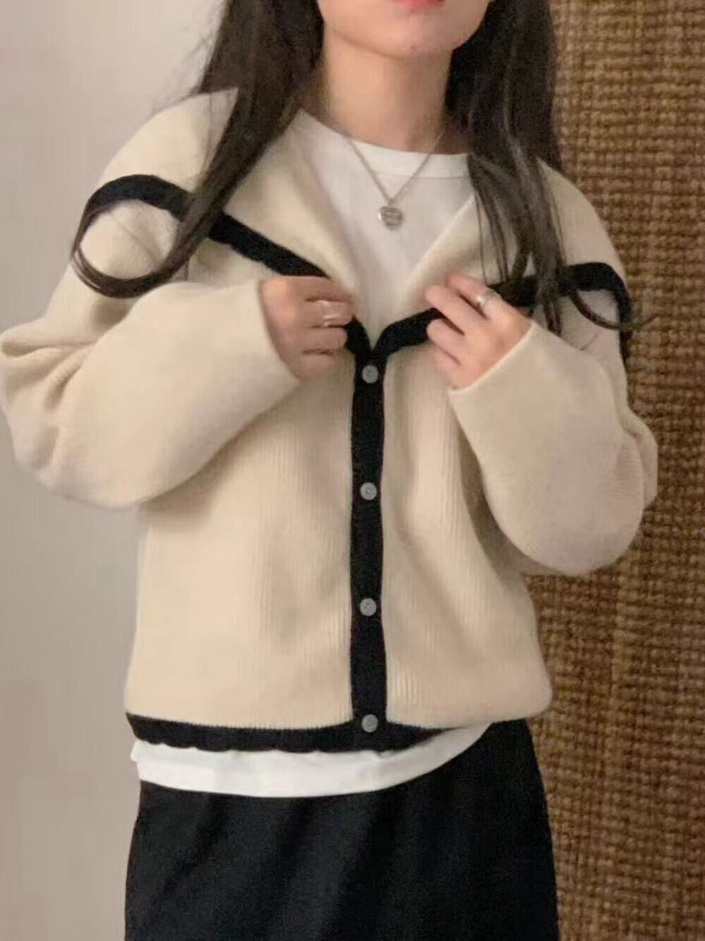 // 40%兔毛+20%綿羊毛撞色邊大翻領CD