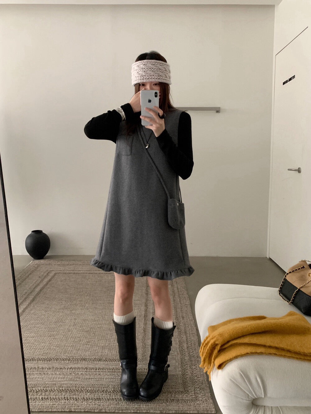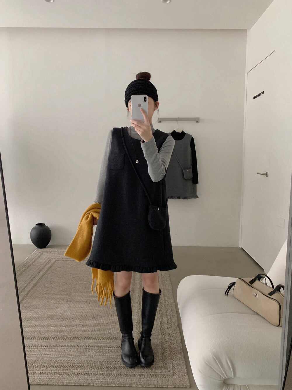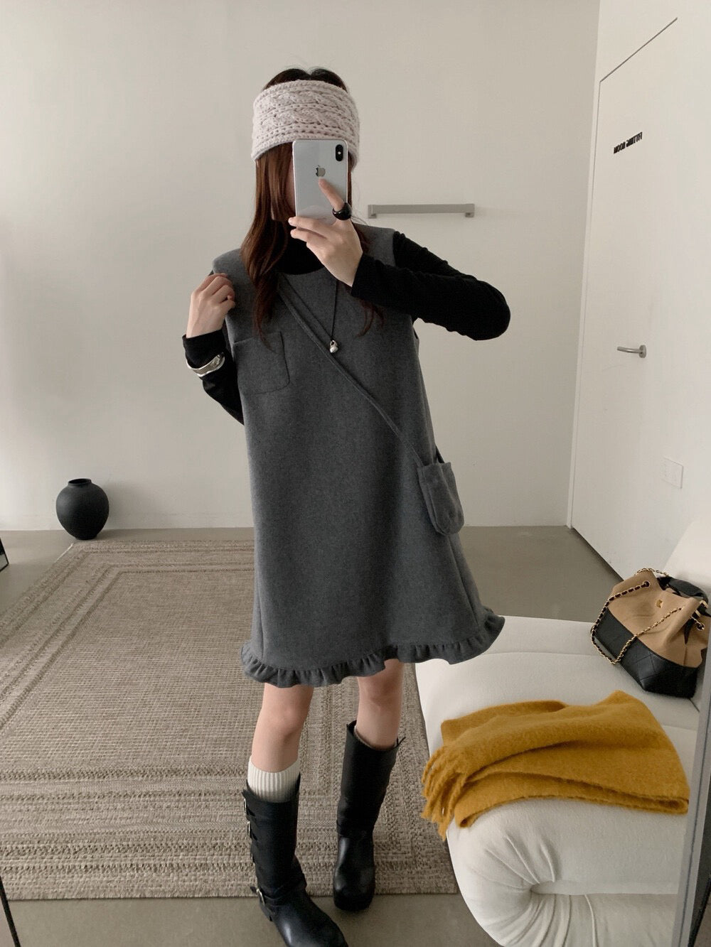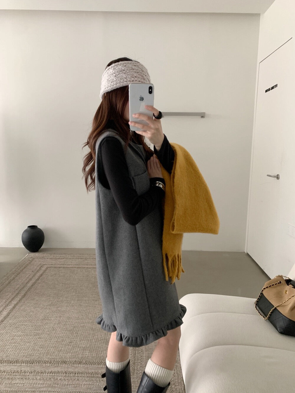 // 50%羊毛花邊腳背心毛呢OPS(連袋仔)