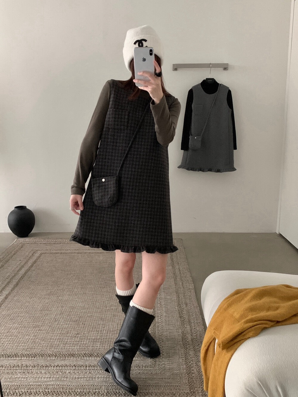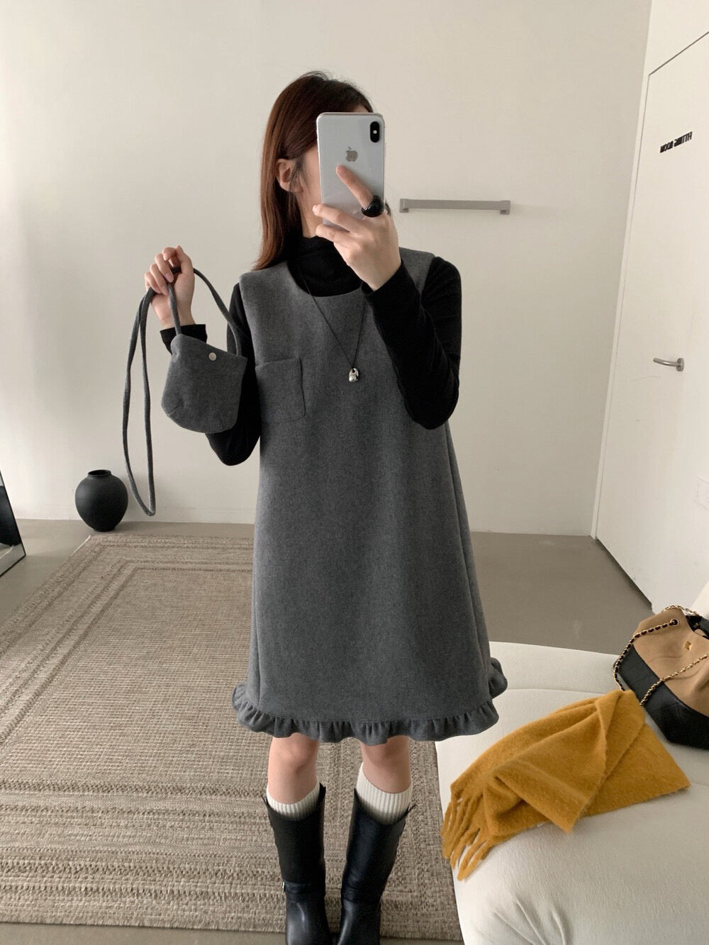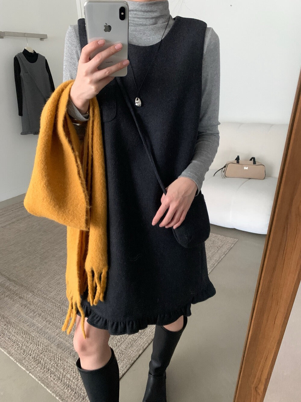 // 50%羊毛花邊腳背心毛呢OPS(連袋仔)