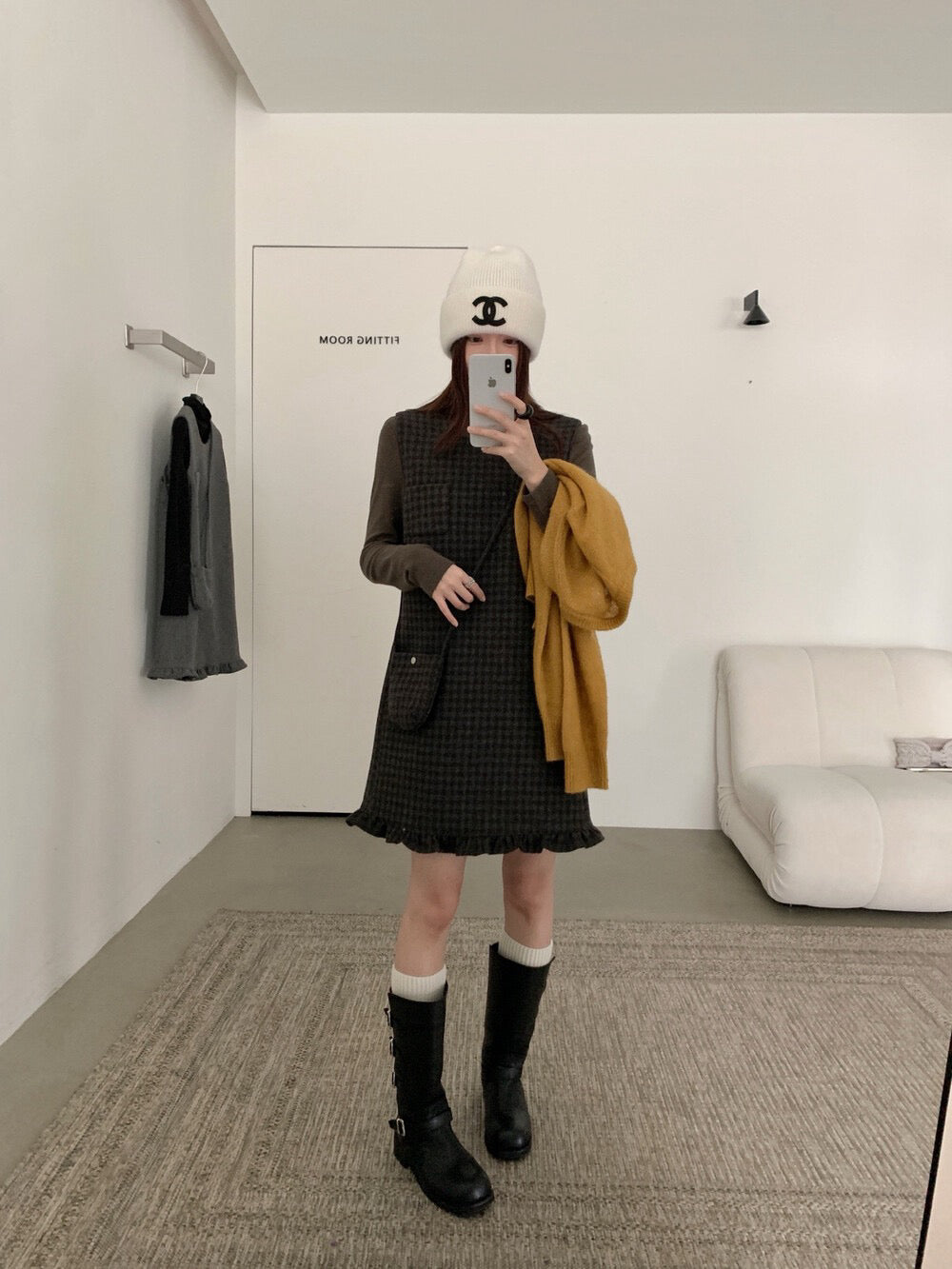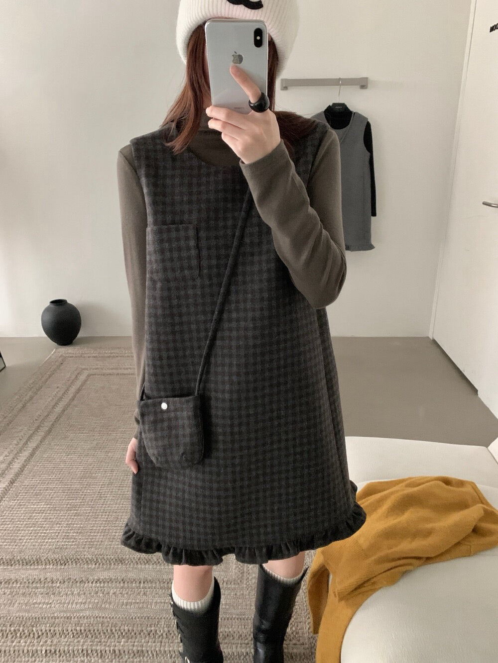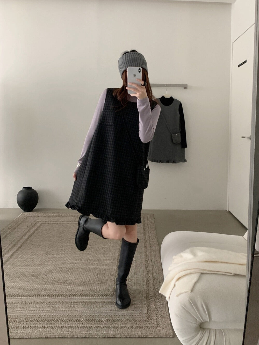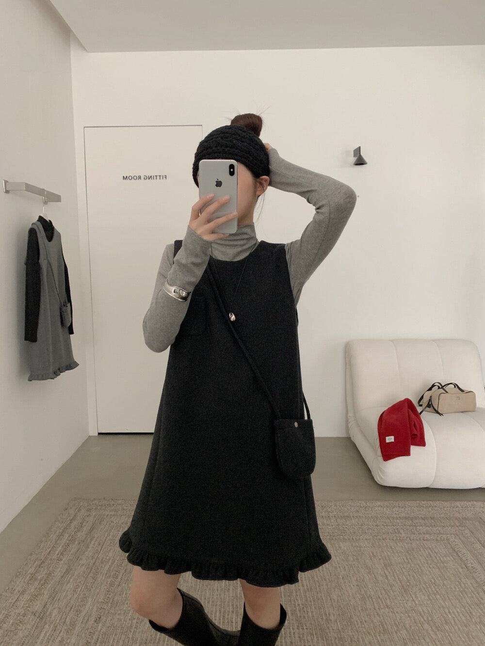// 50%羊毛花邊腳背心毛呢OPS(連袋仔)