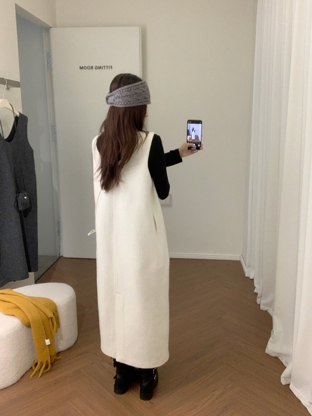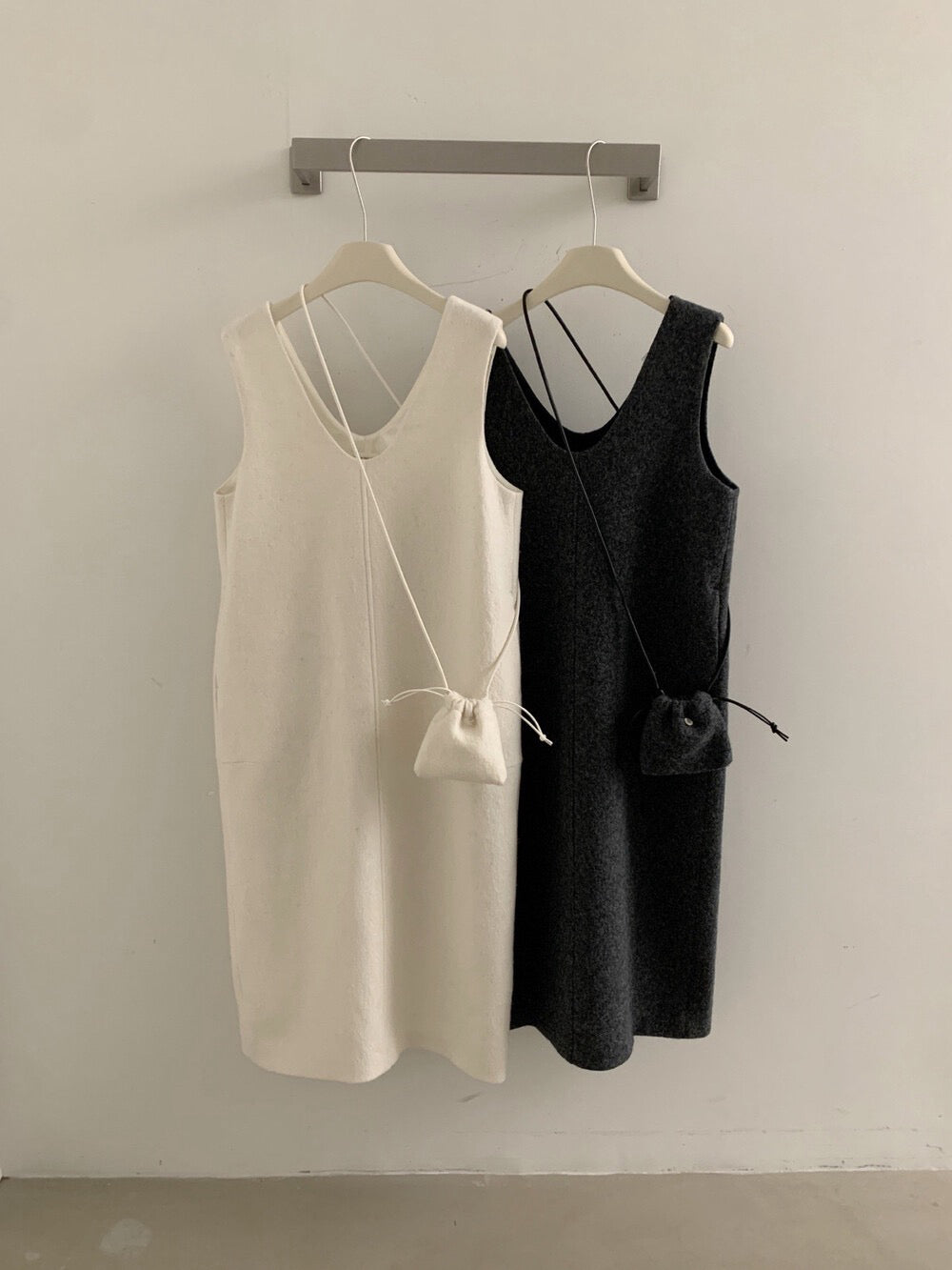 // 50%wool柔軟U領背心OPS(連袋仔)