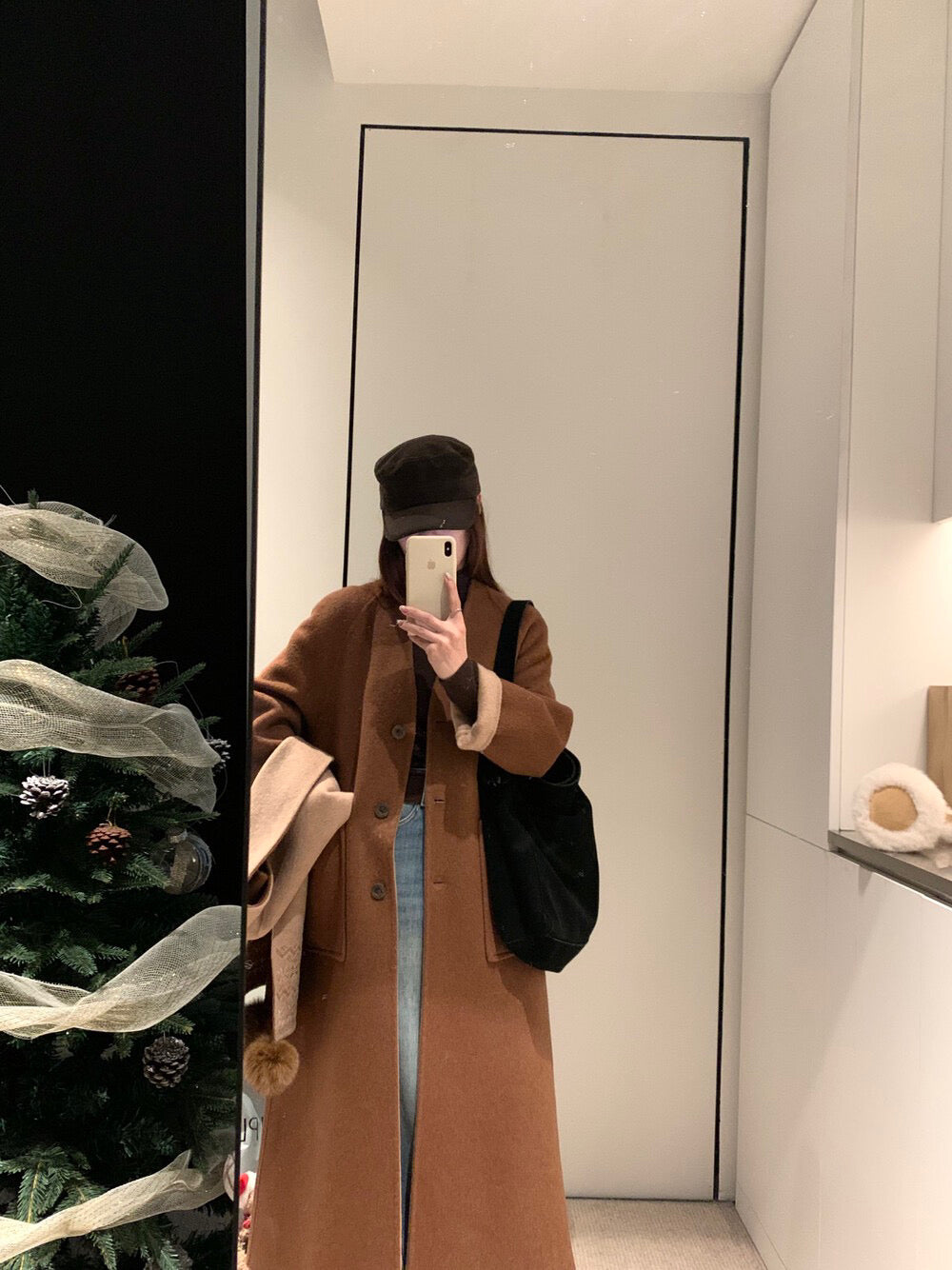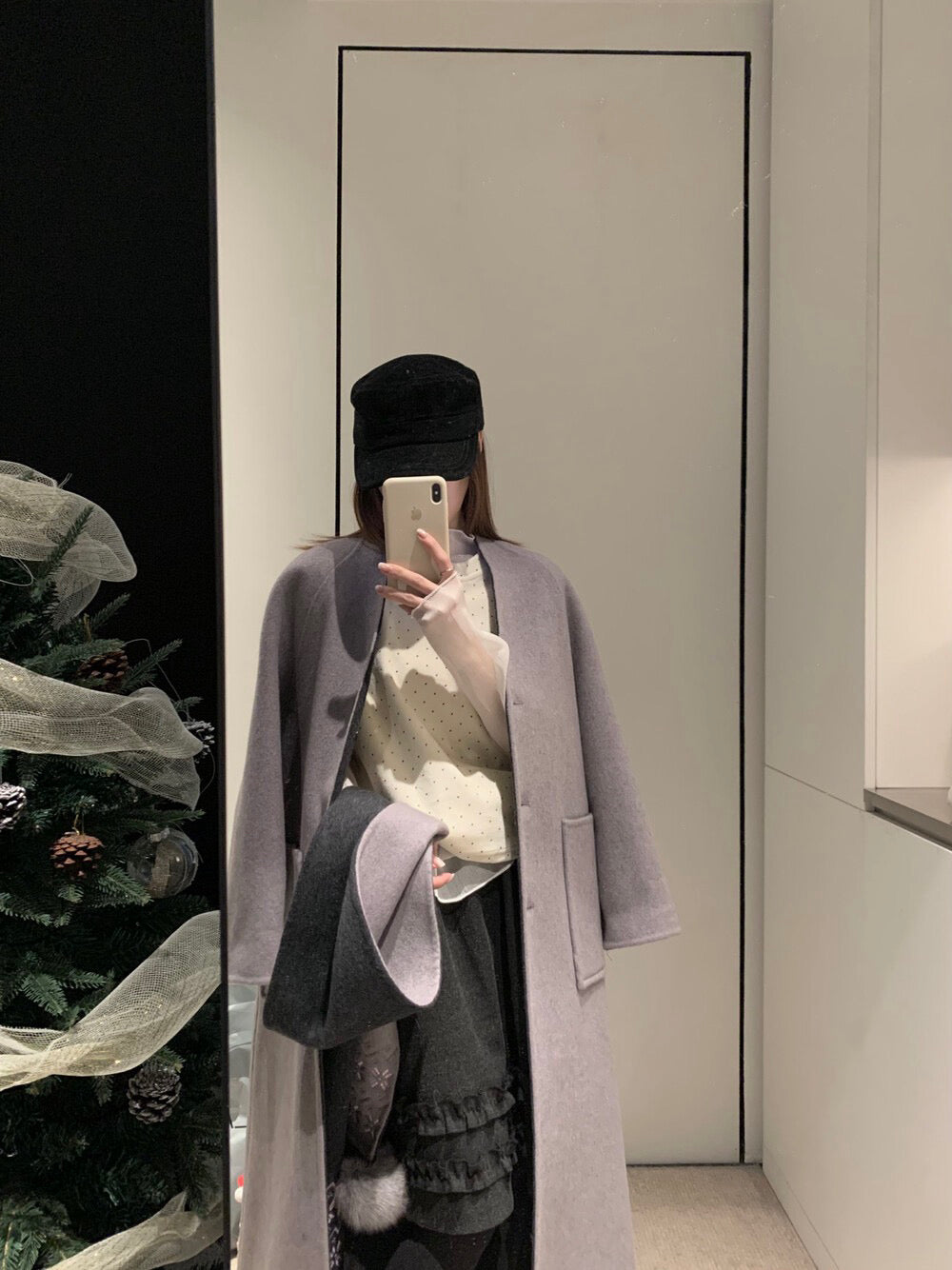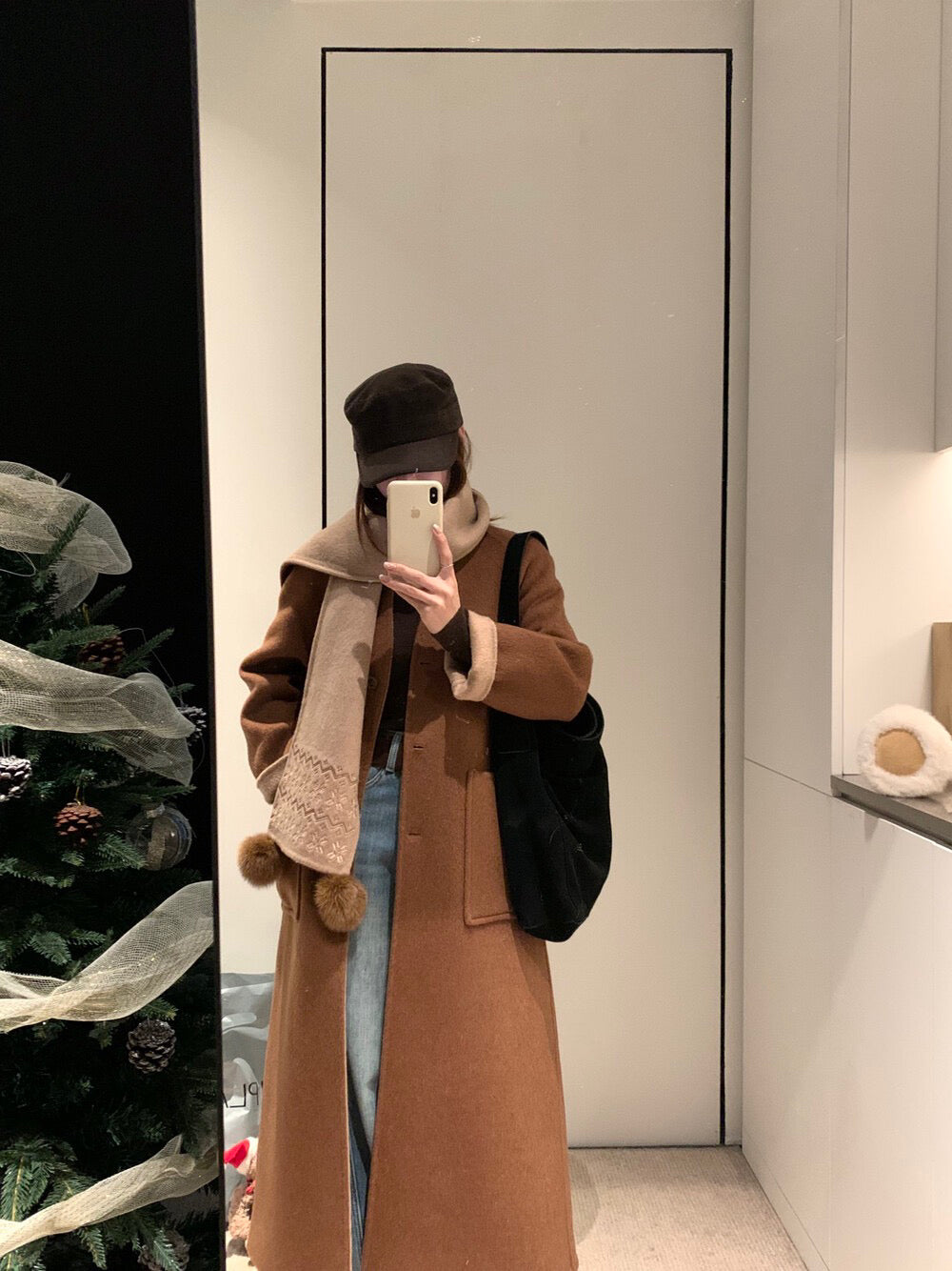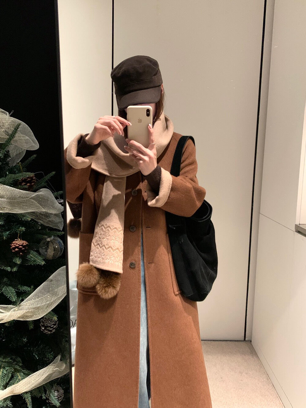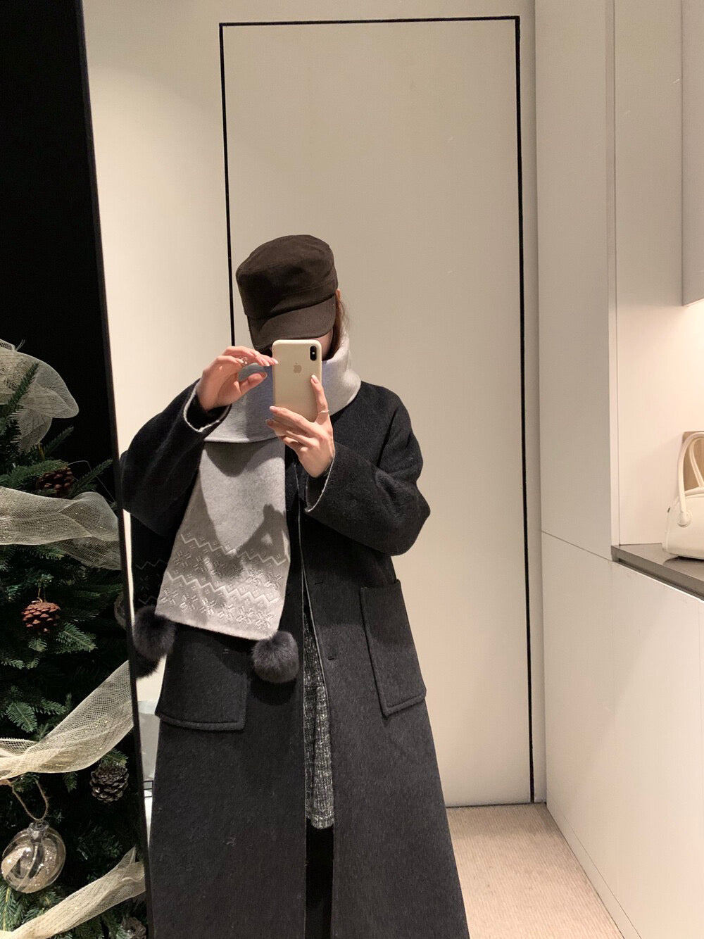 // 70%綿羊毛簡約插肩V領長款手工羊毛外套(連頸巾)