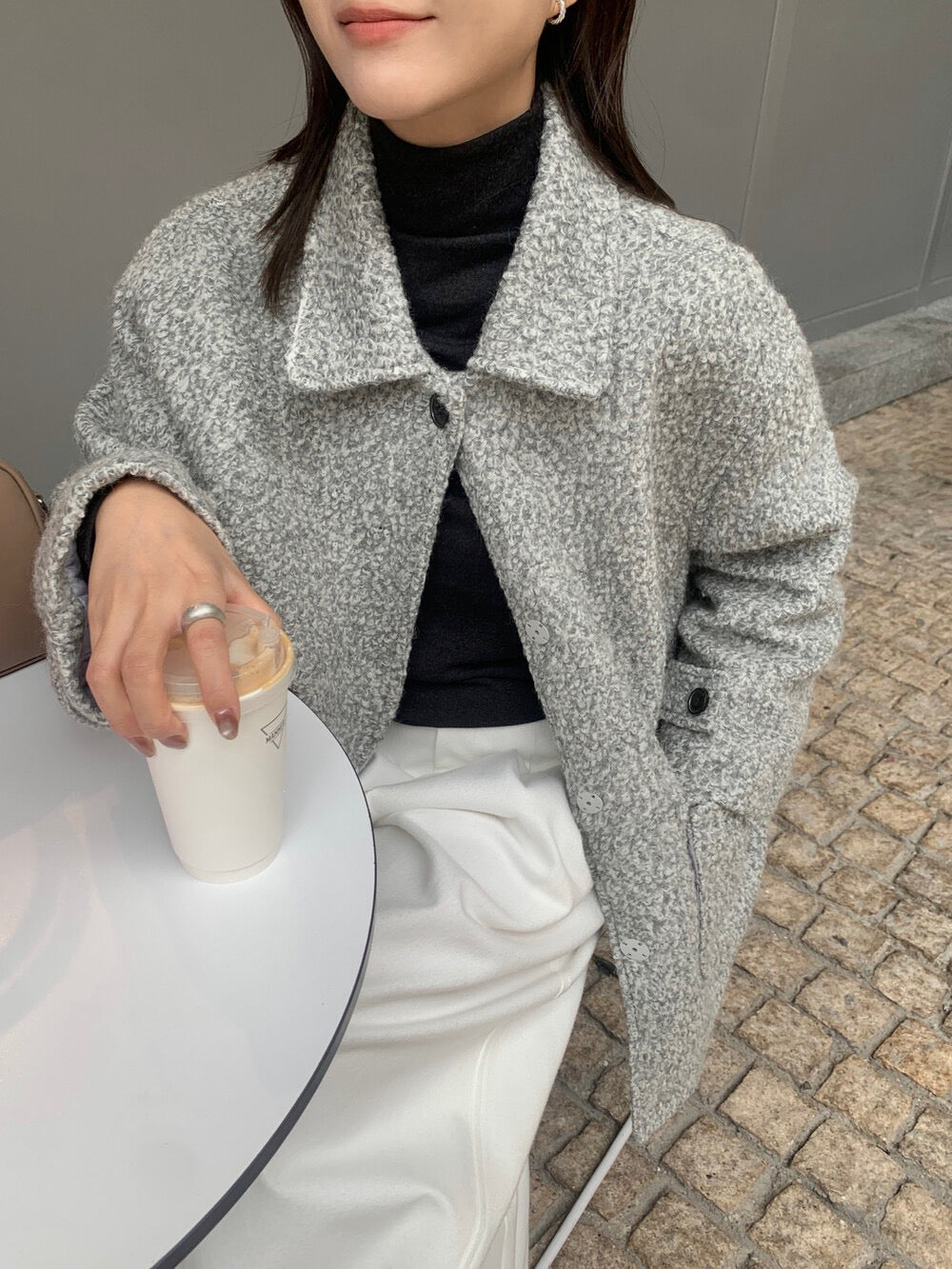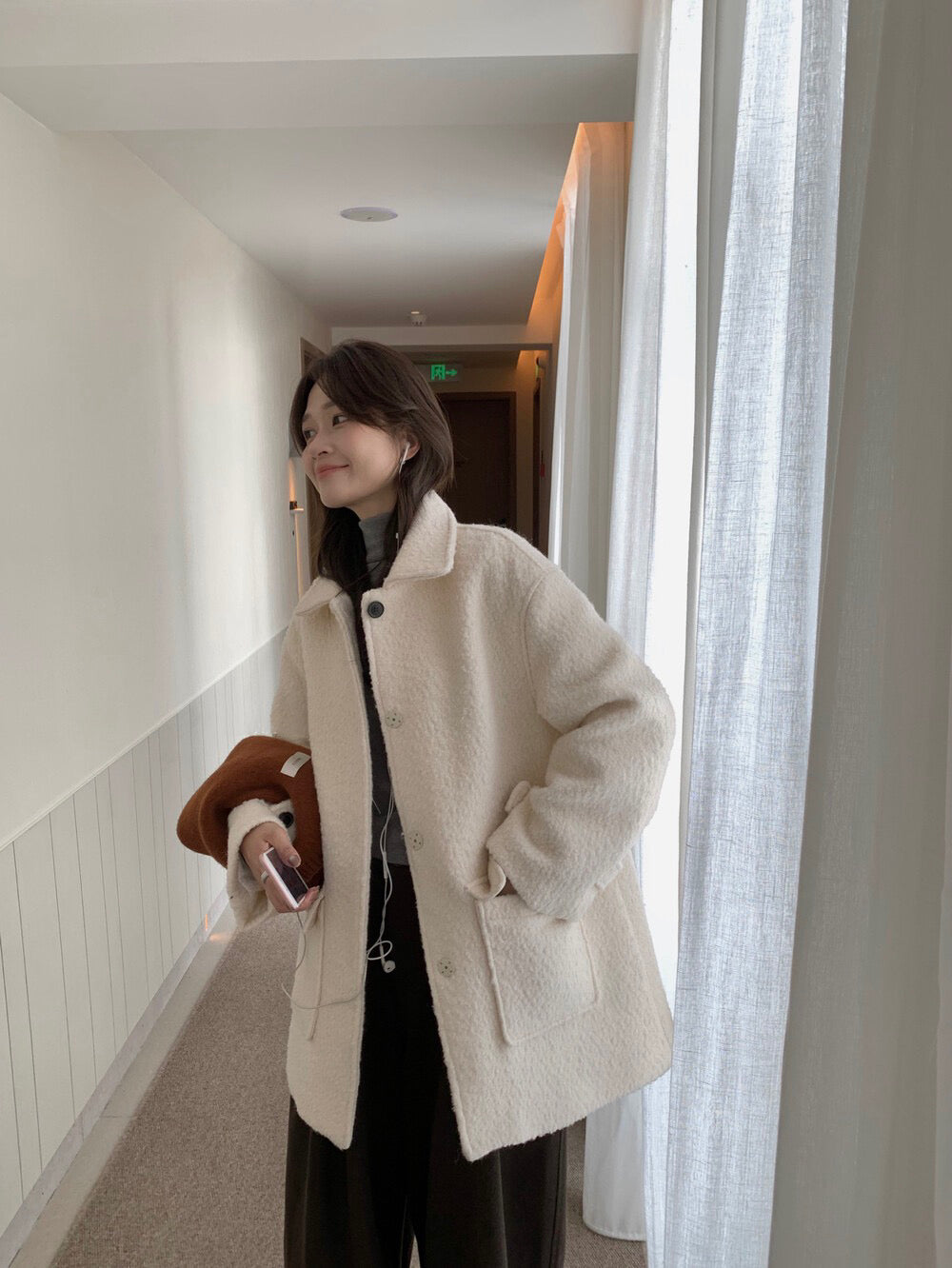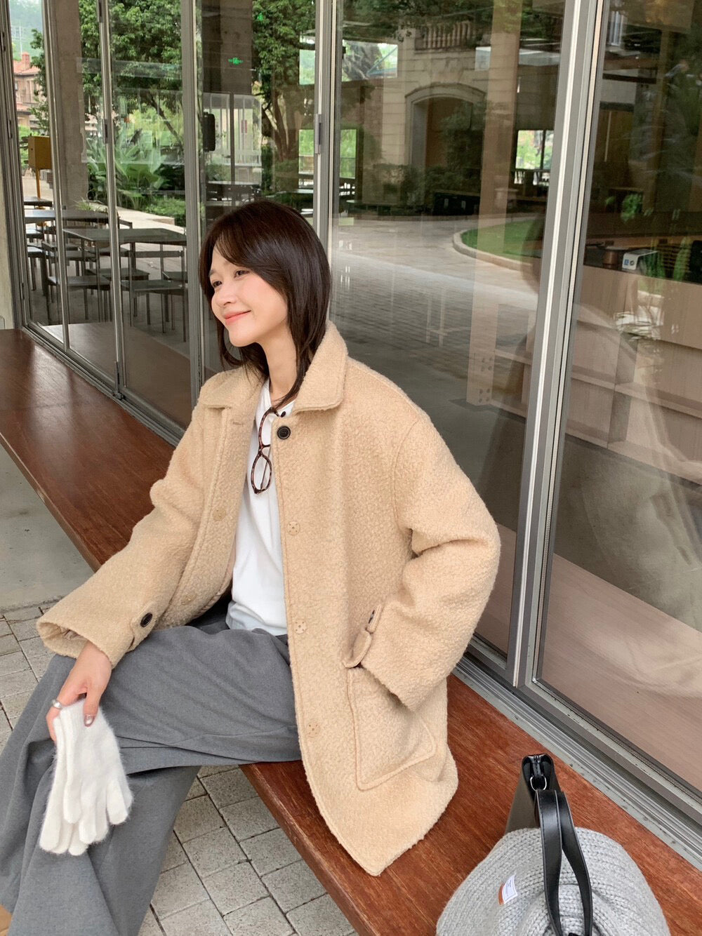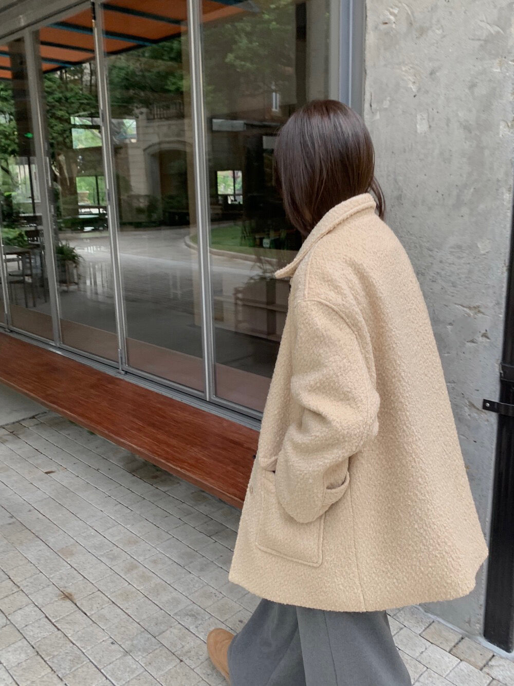 // 70%羊毛簡約翻領中長外套