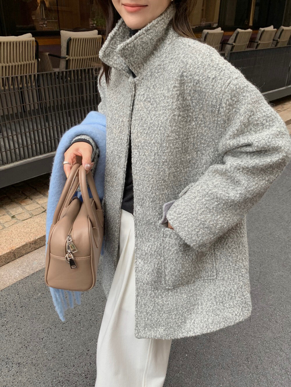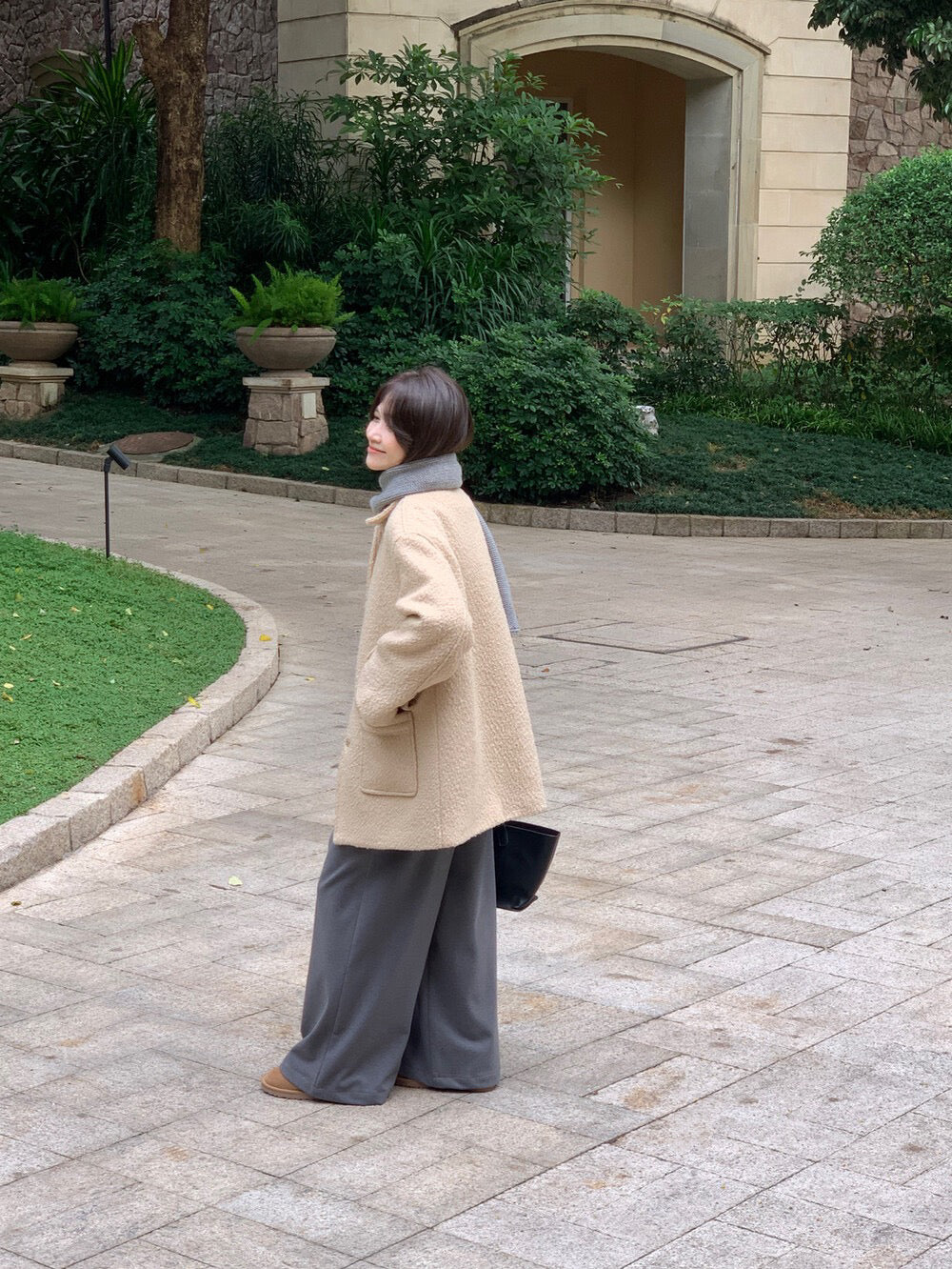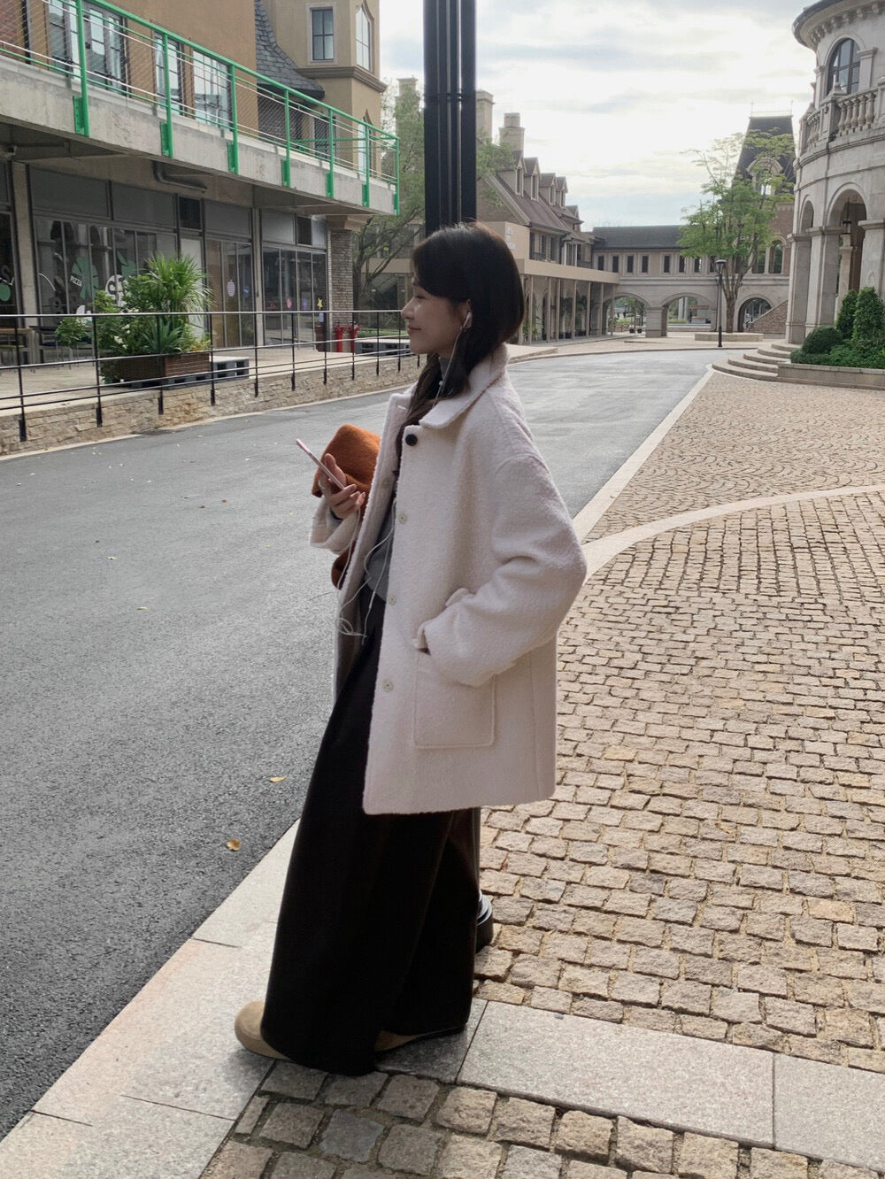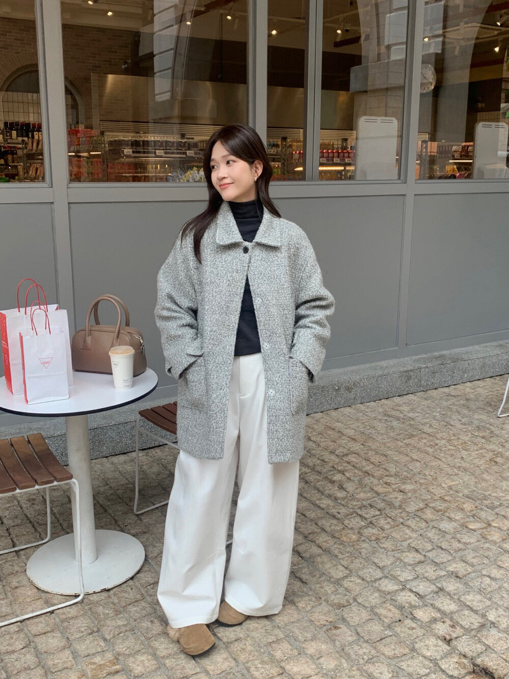 // 70%羊毛簡約翻領中長外套