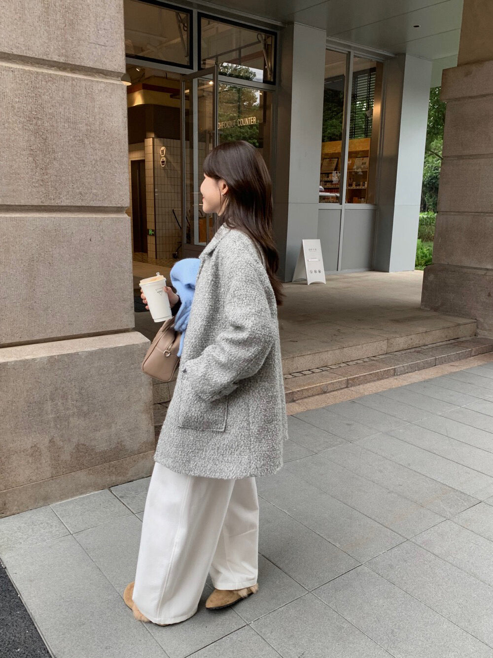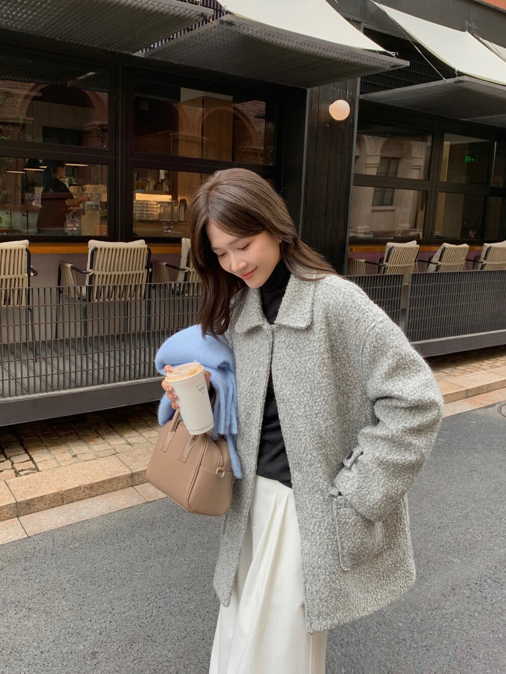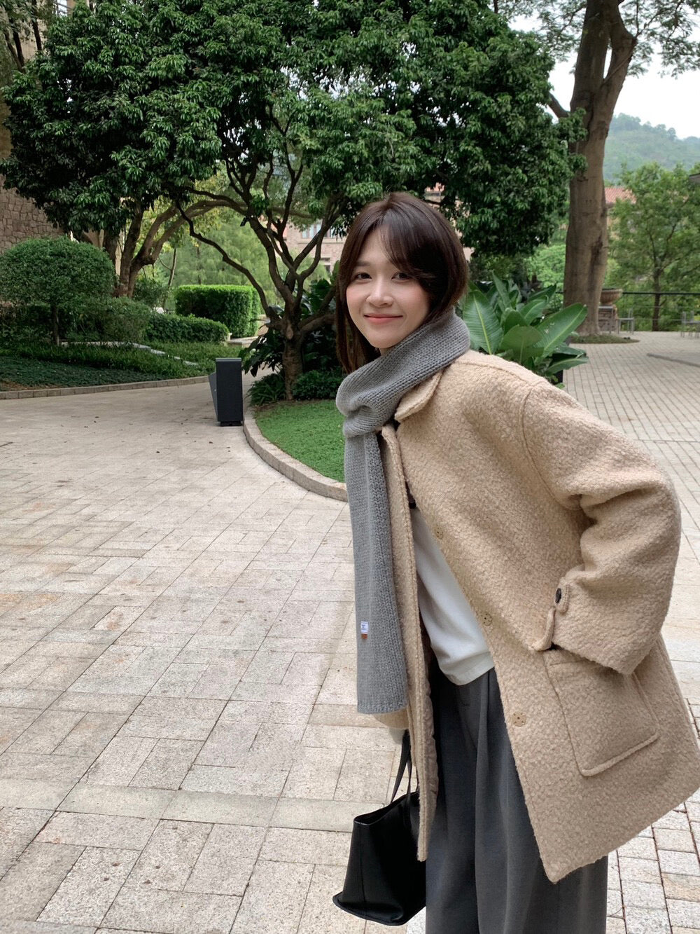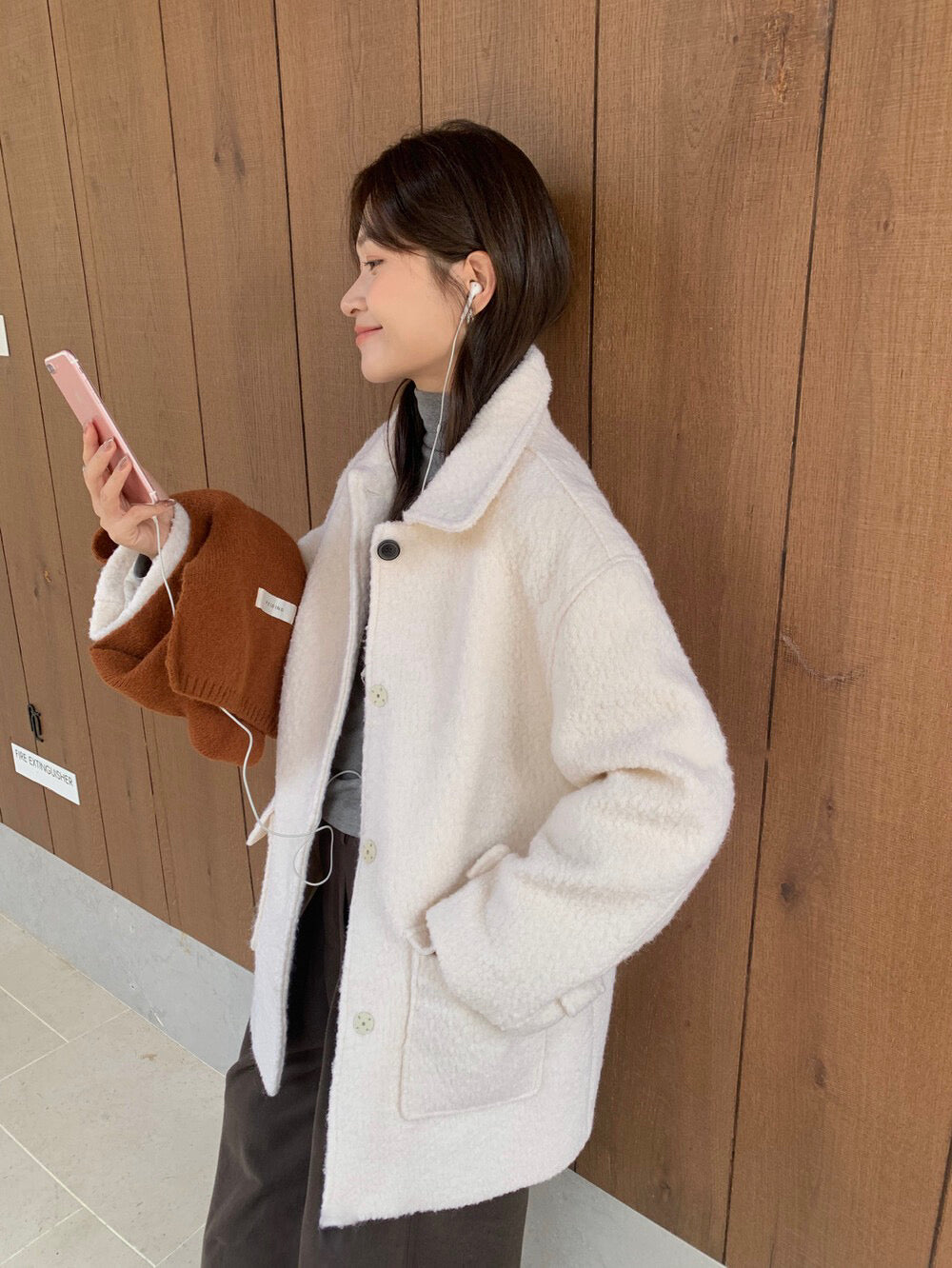// 70%羊毛簡約翻領中長外套