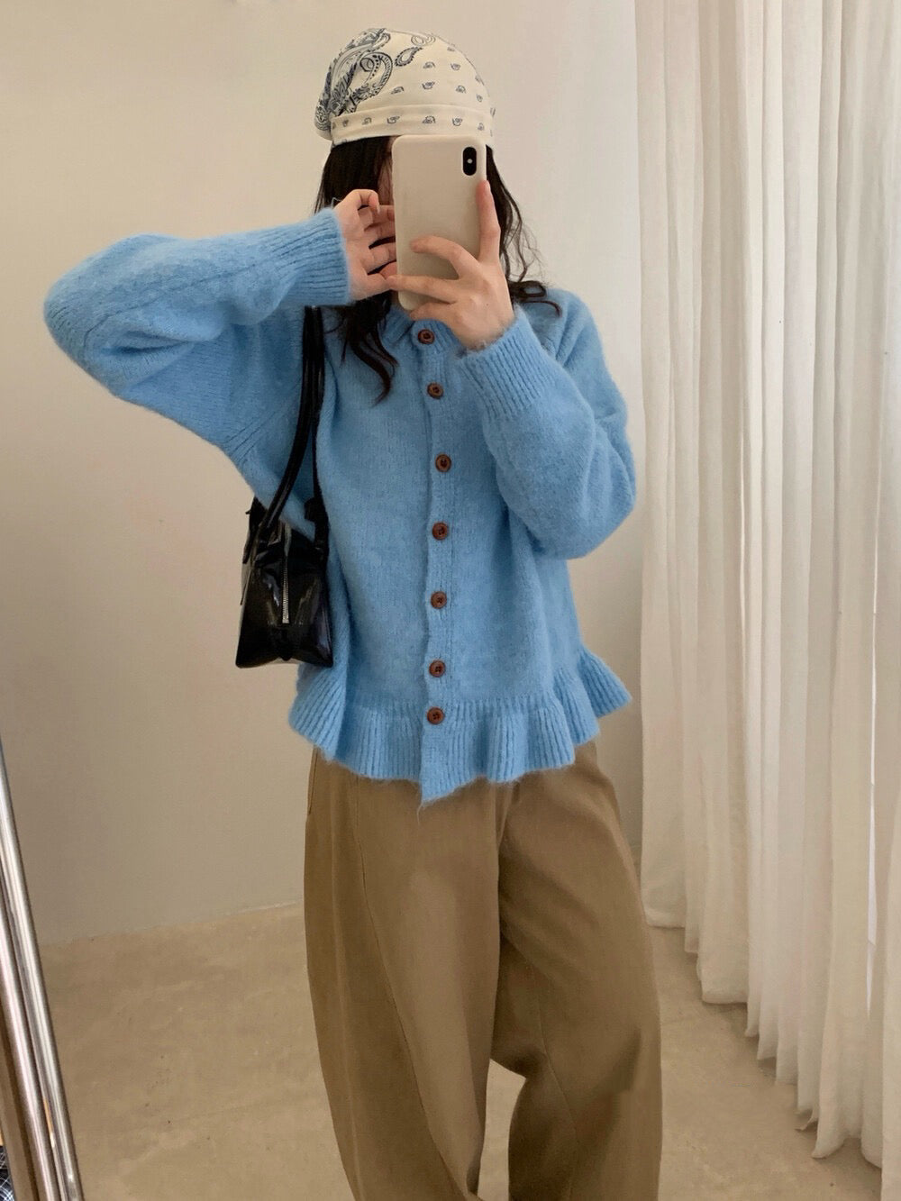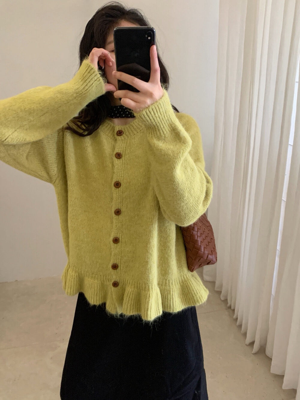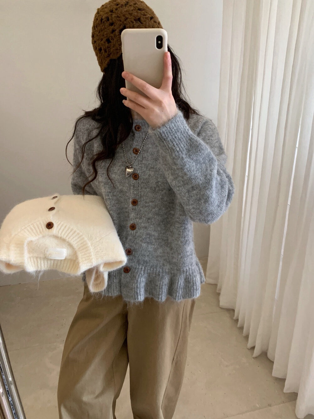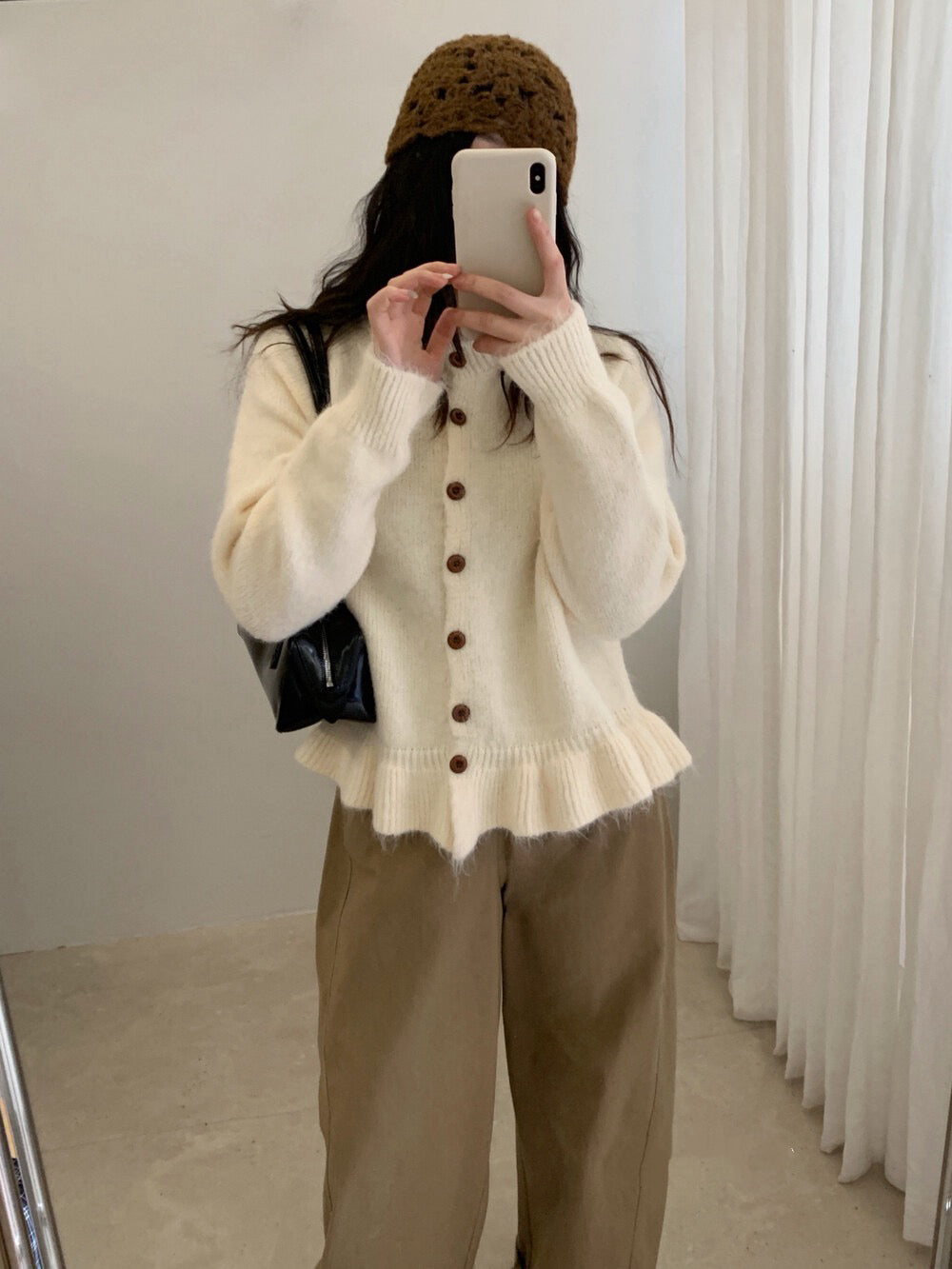 // 8%綿羊毛荷葉花邊腳排扣毛衣