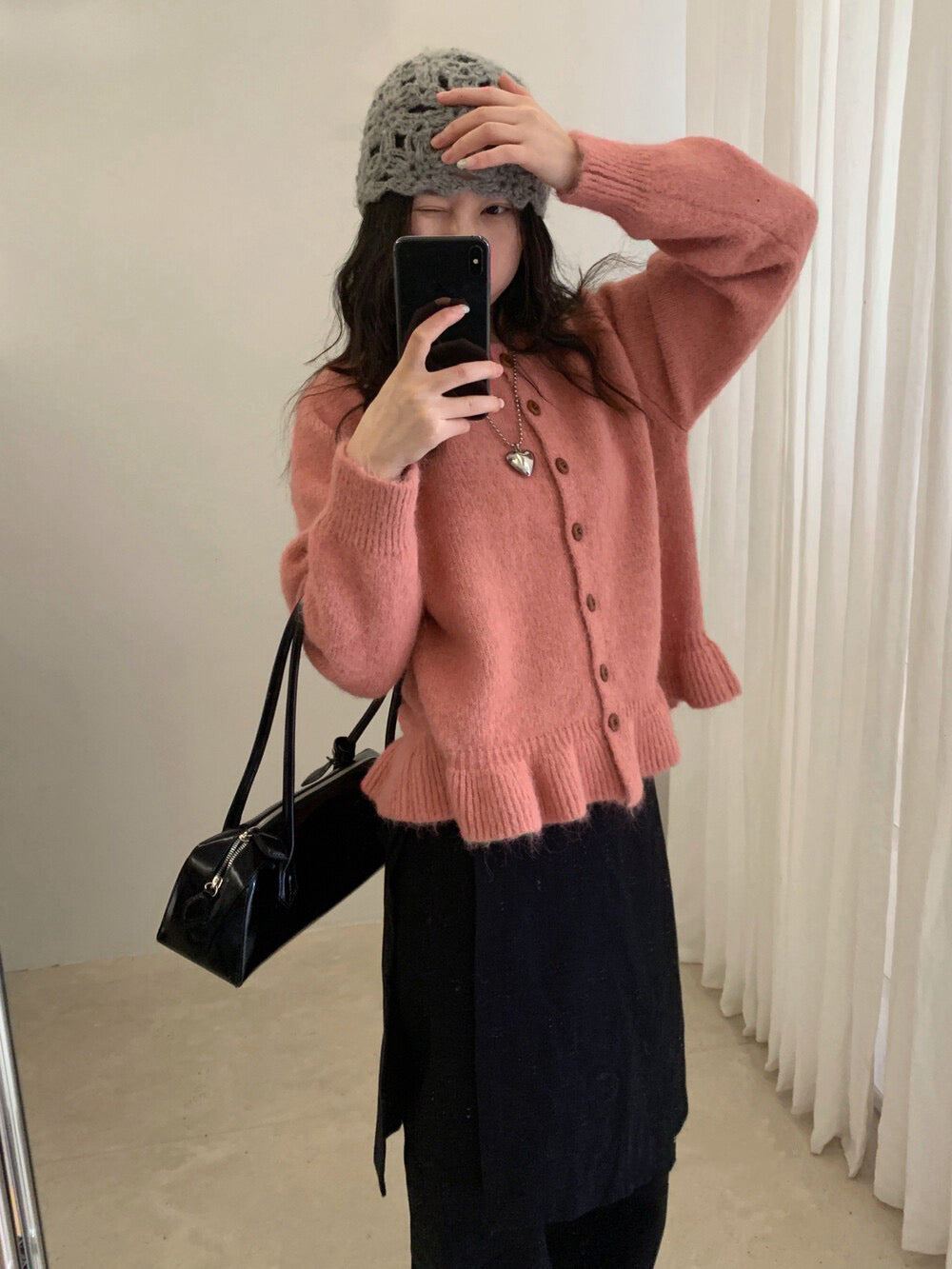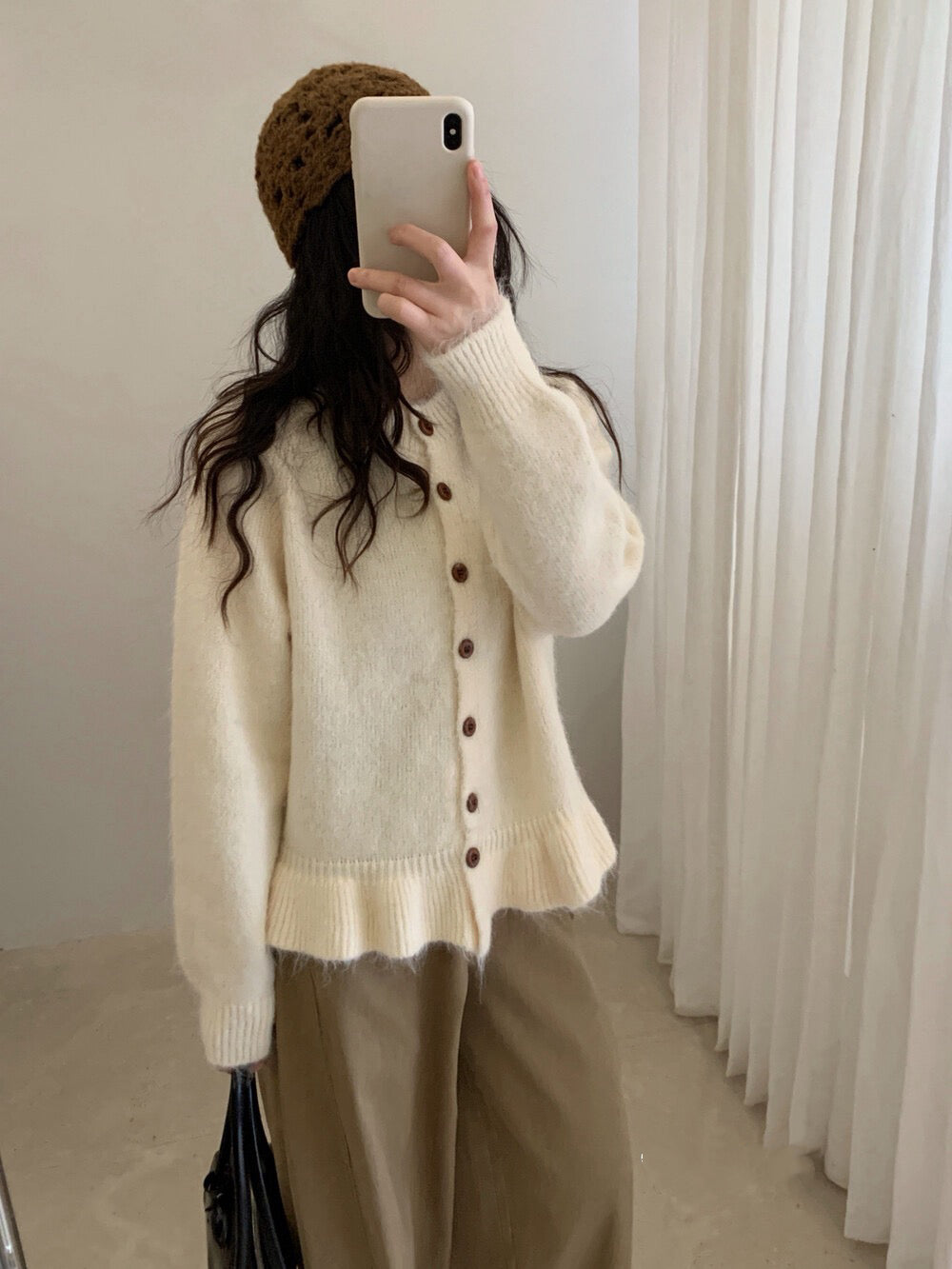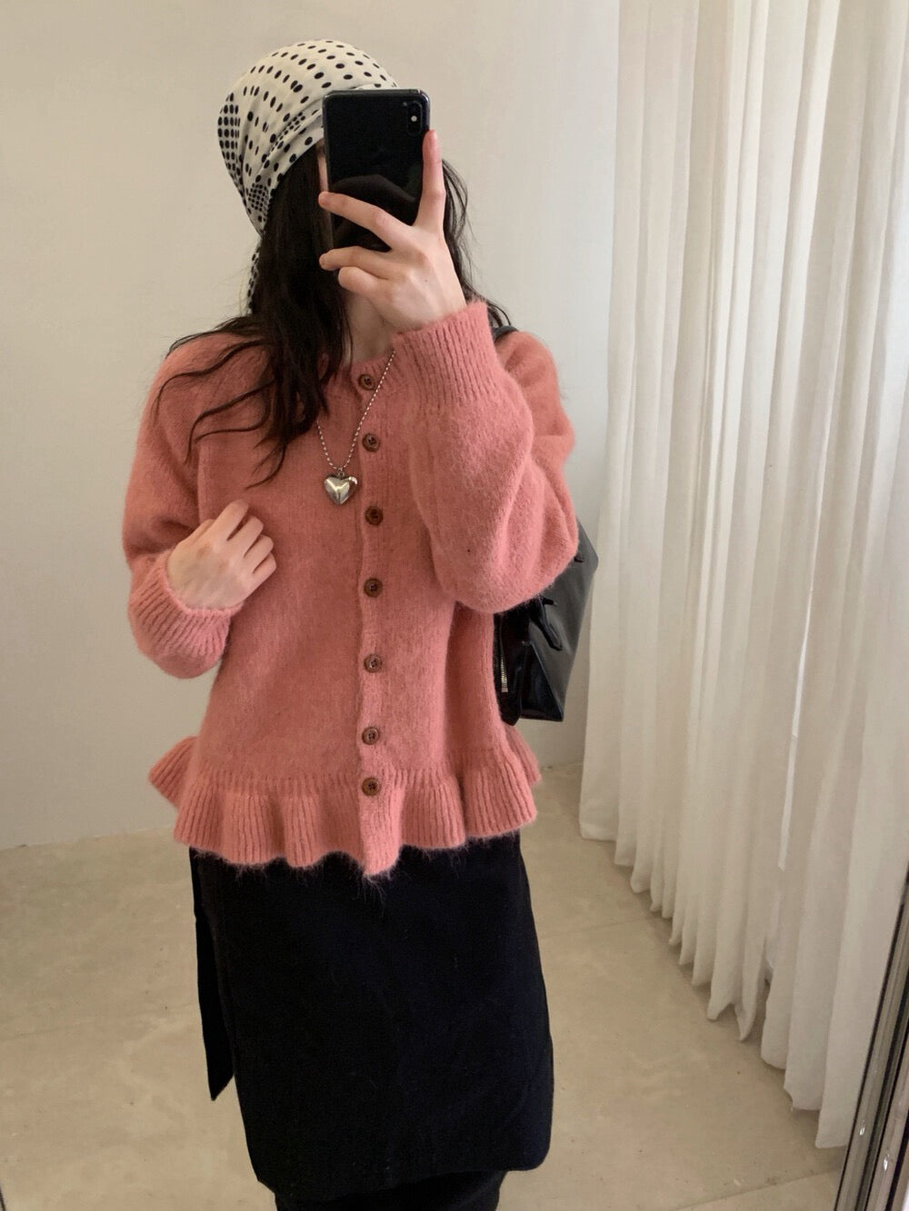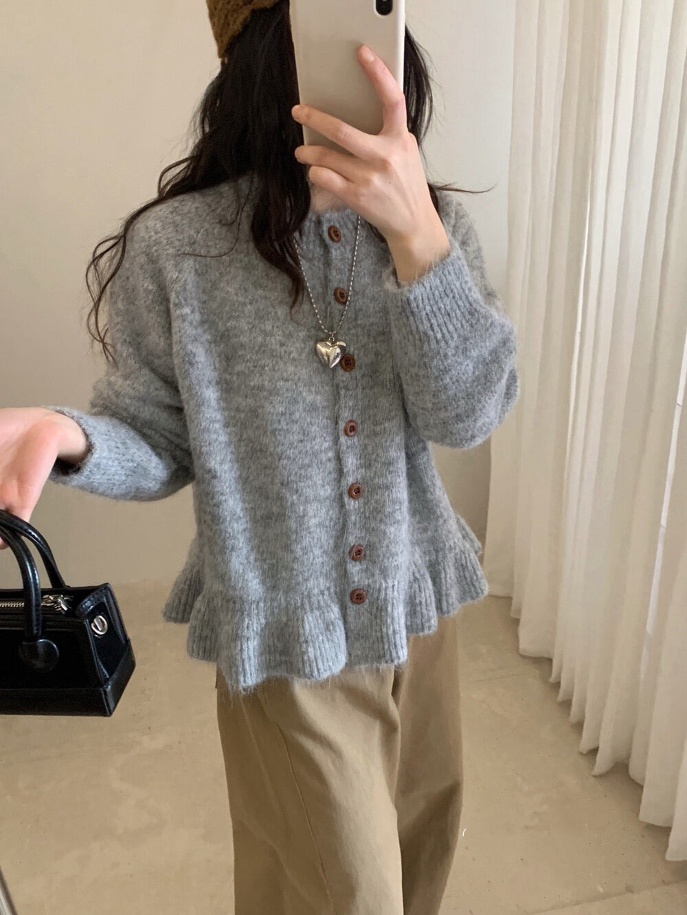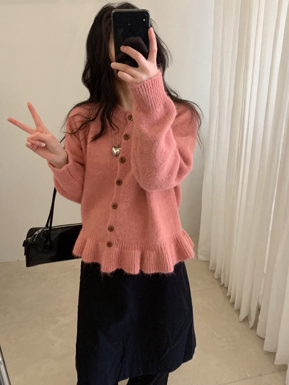 // 8%綿羊毛荷葉花邊腳排扣毛衣