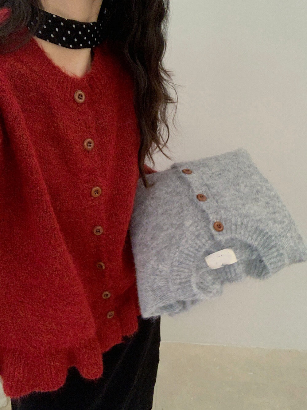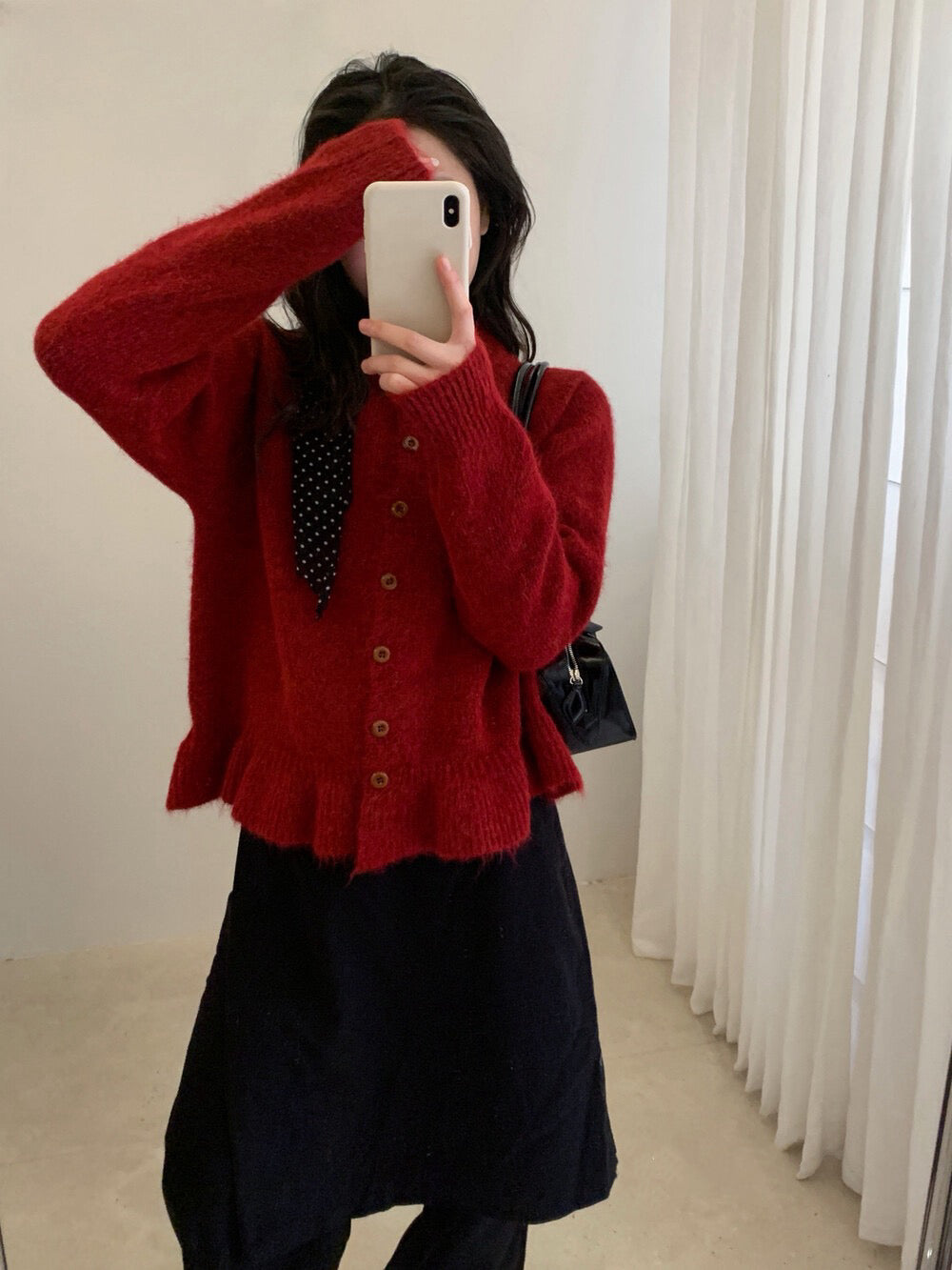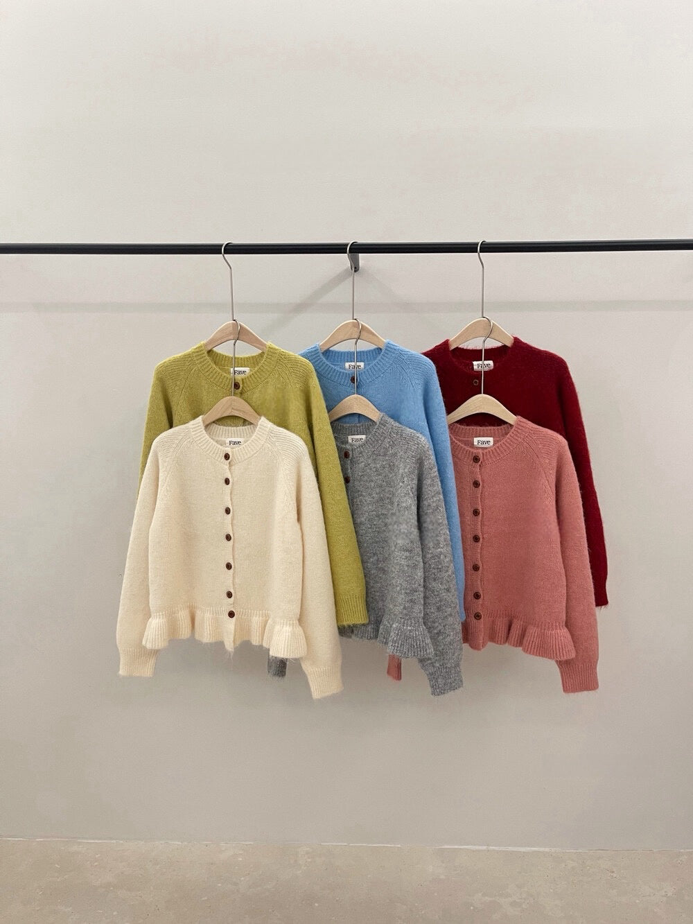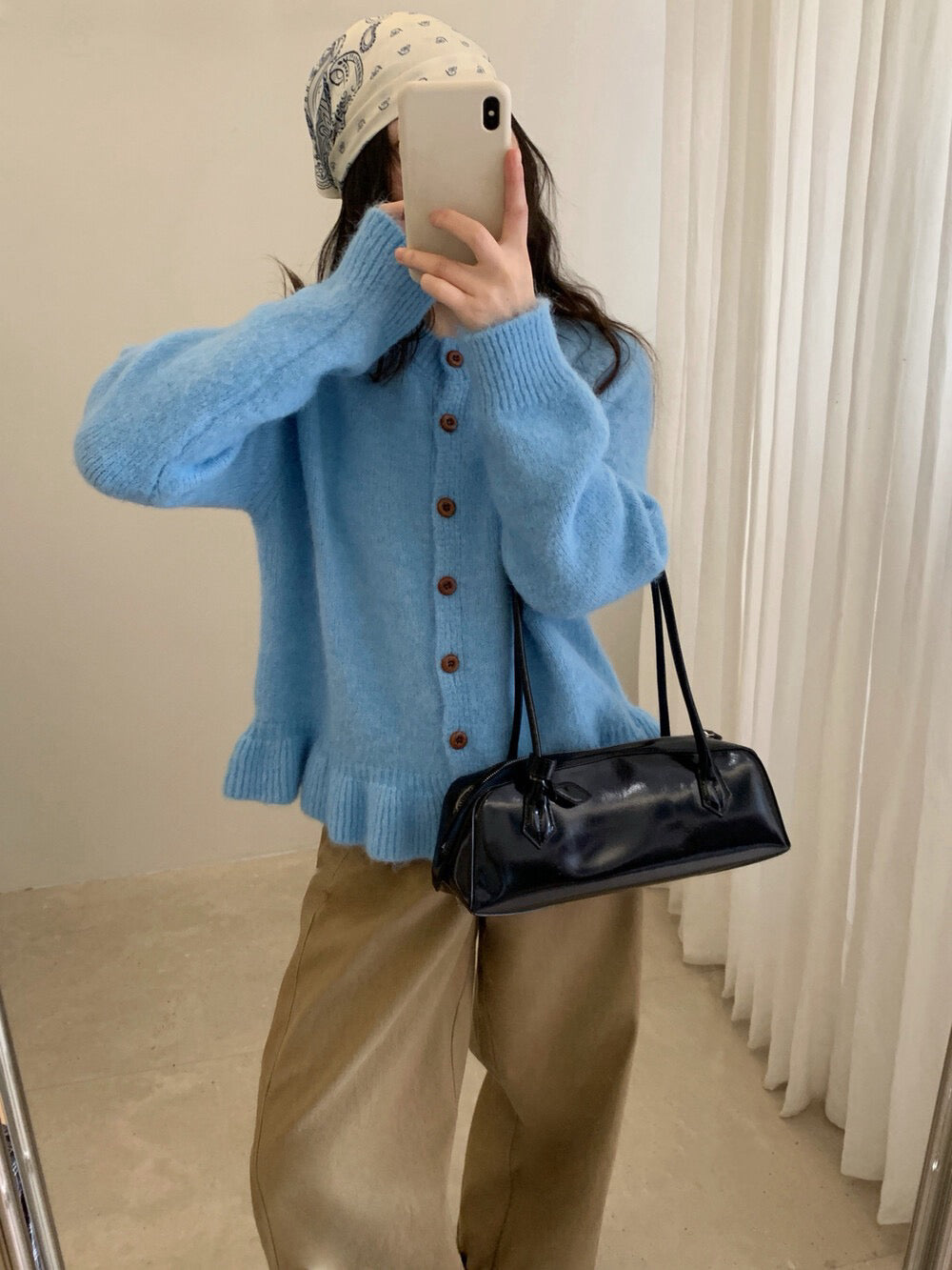 // 8%綿羊毛荷葉花邊腳排扣毛衣