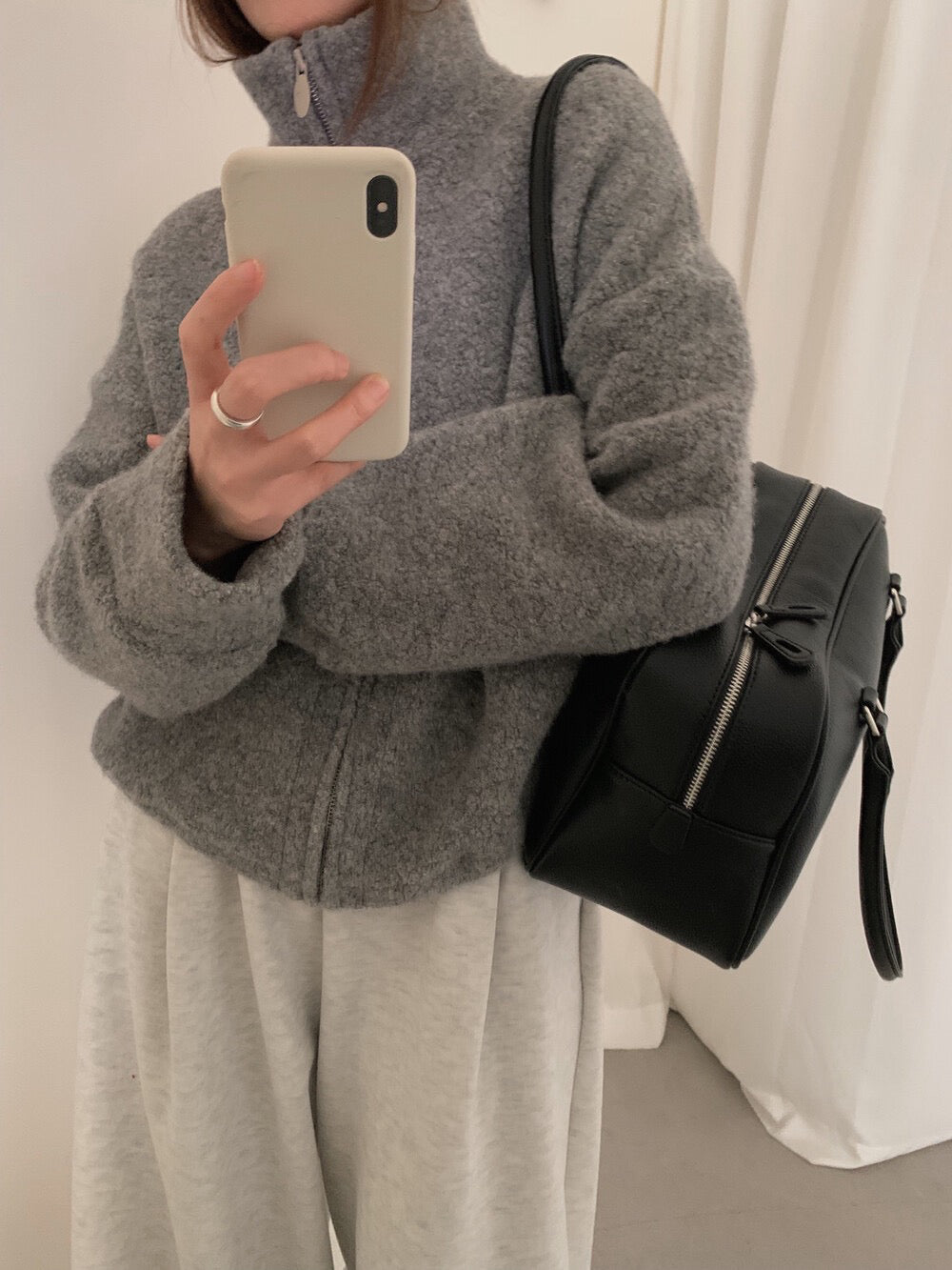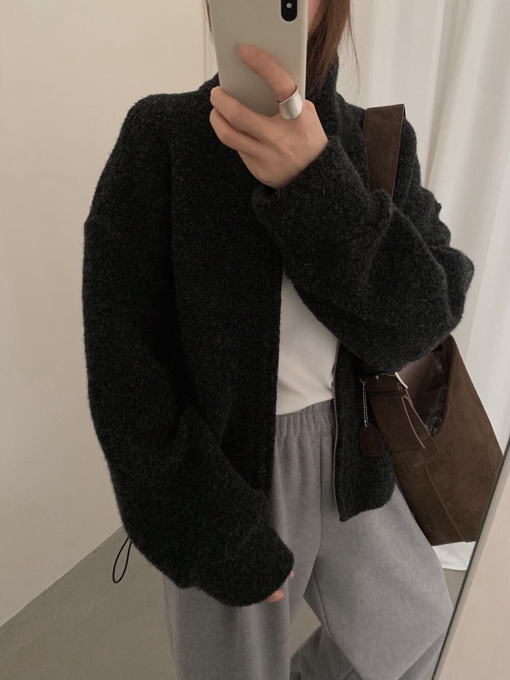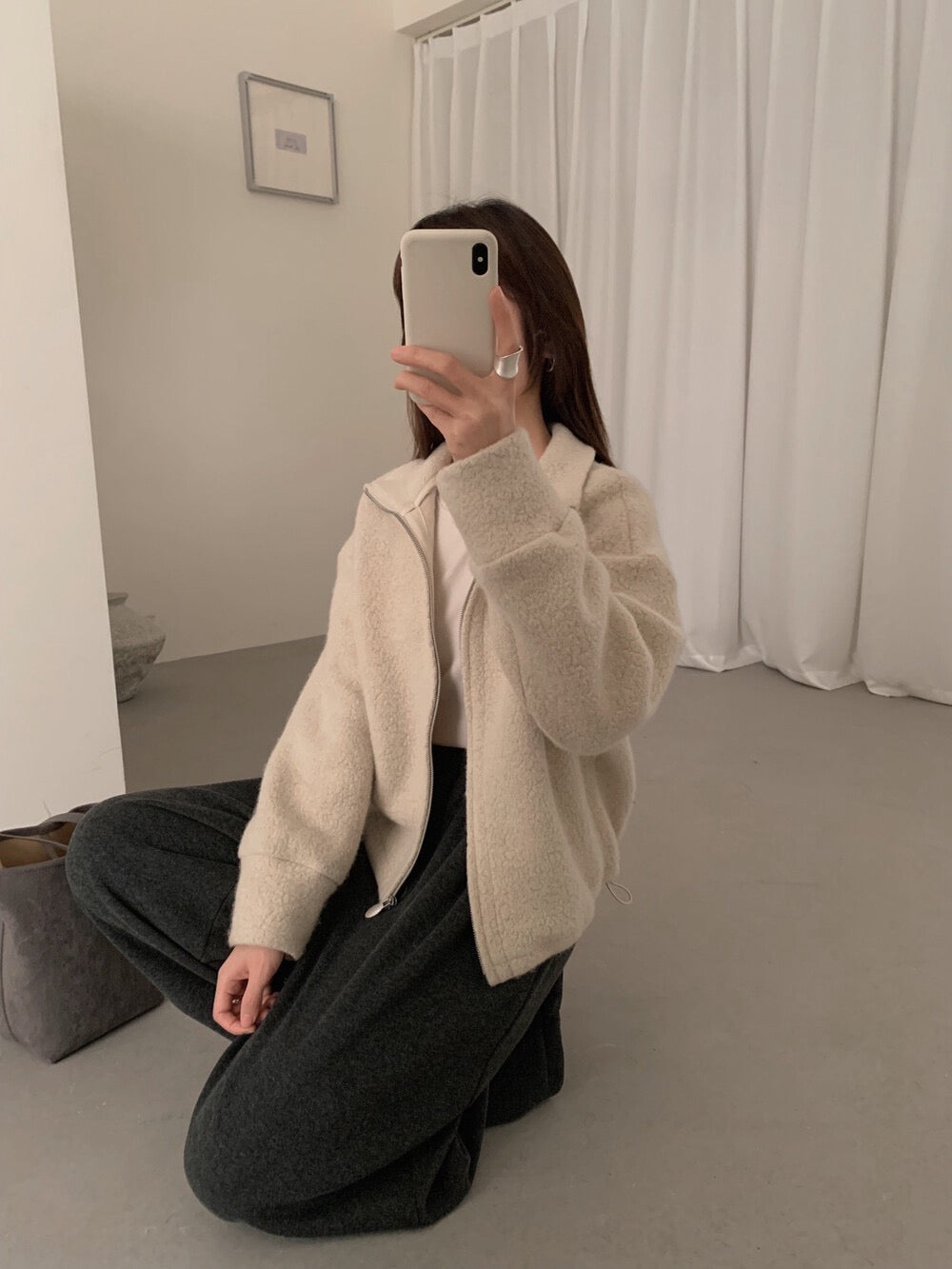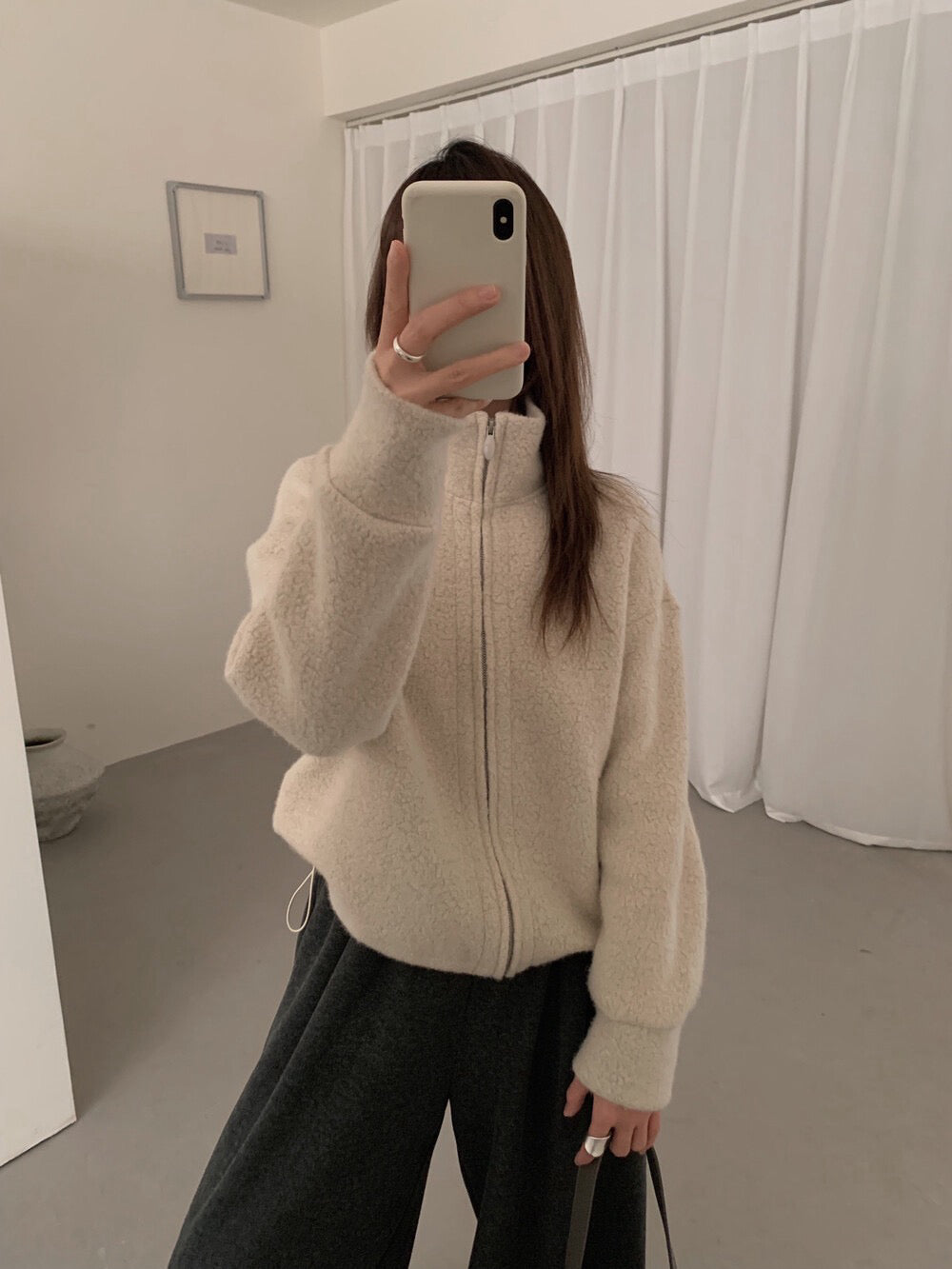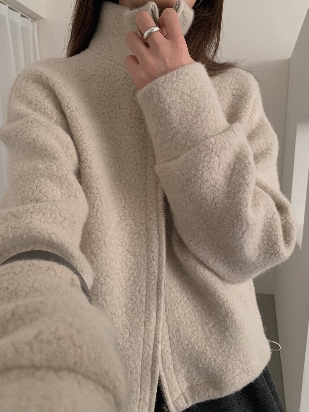 // 85%羊毛下擺可抽繩立領外套