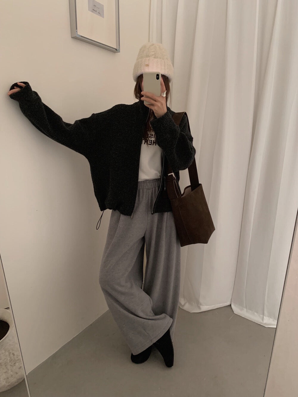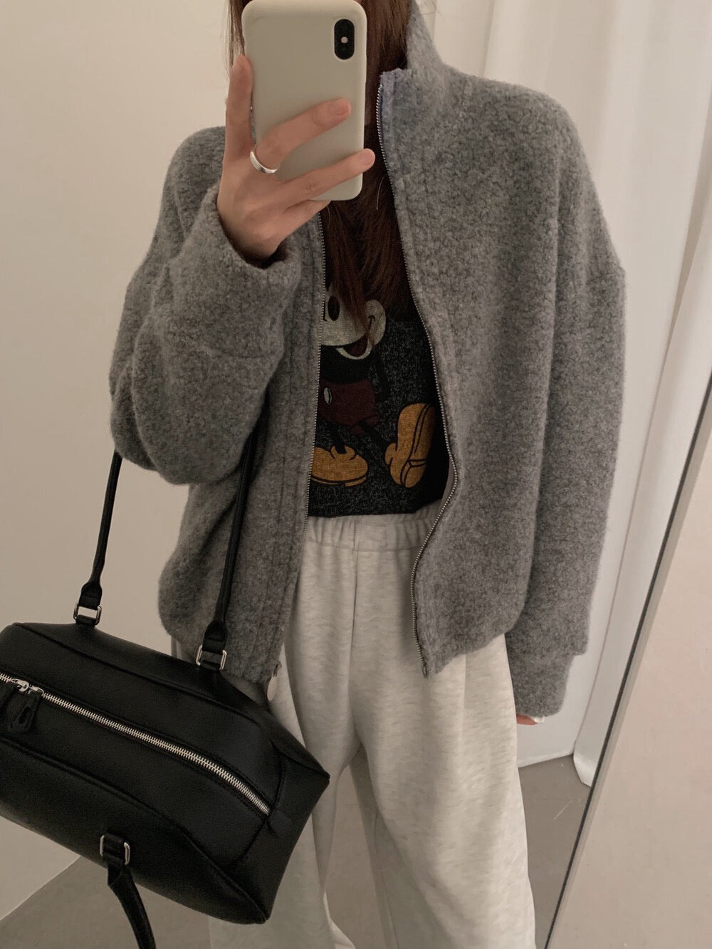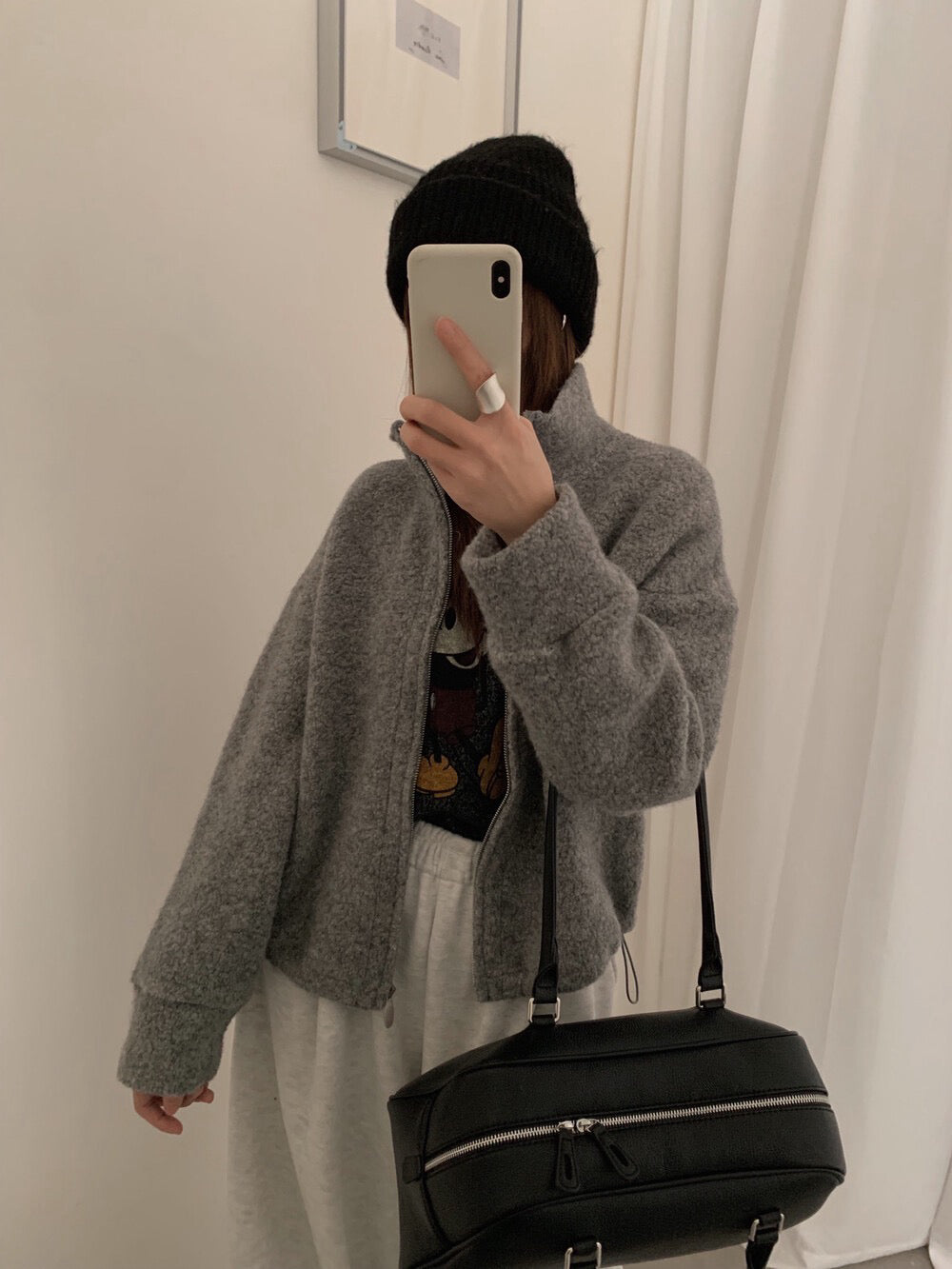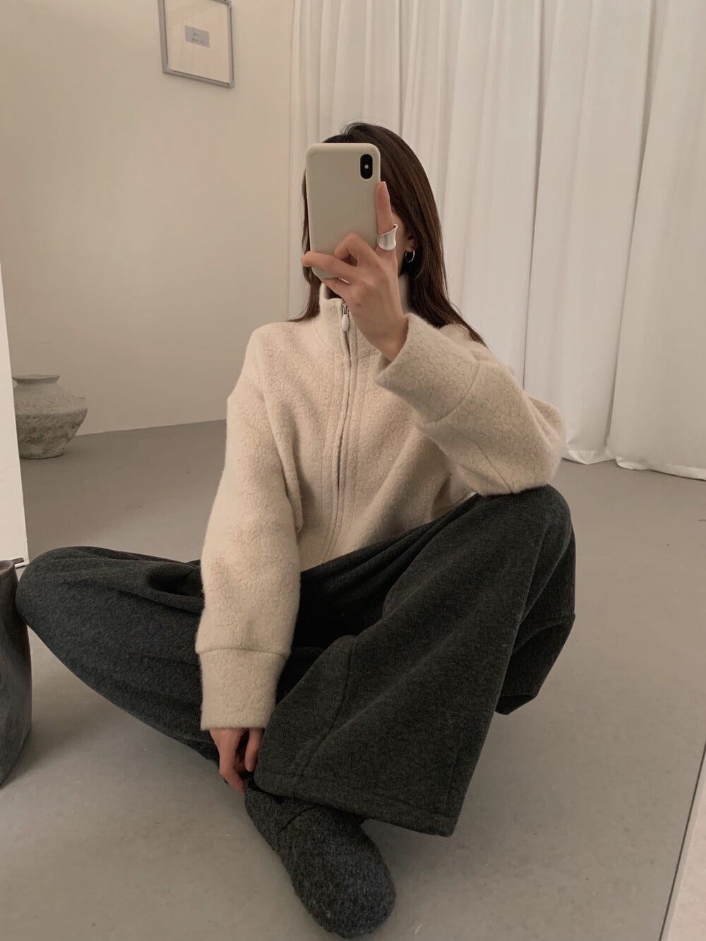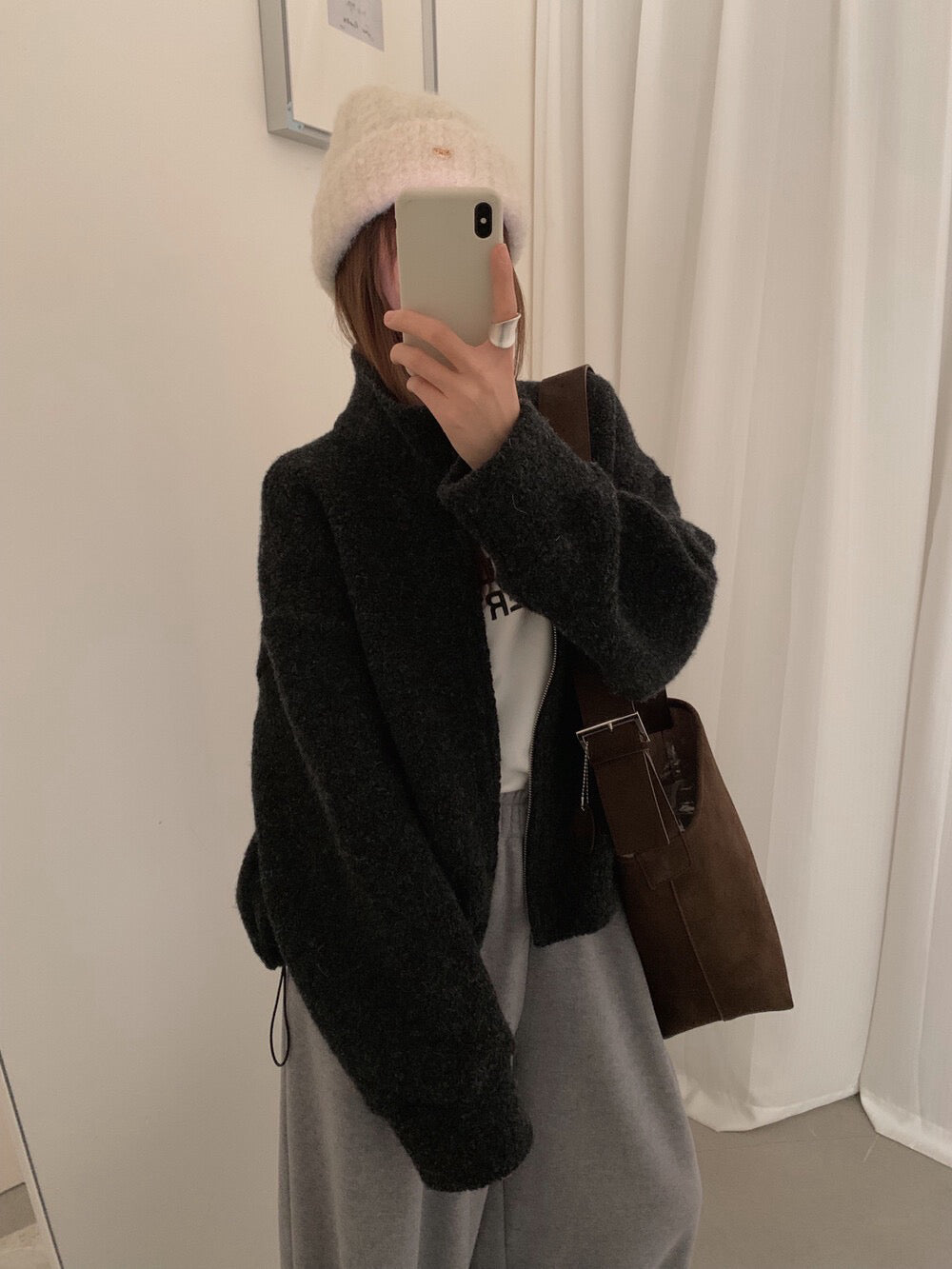 // 85%羊毛下擺可抽繩立領外套