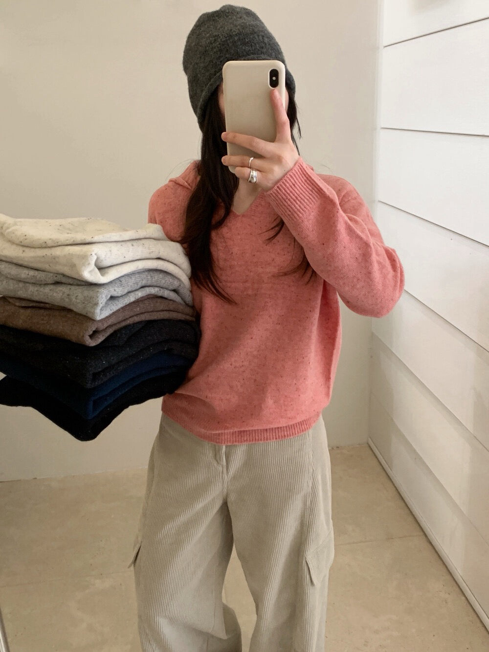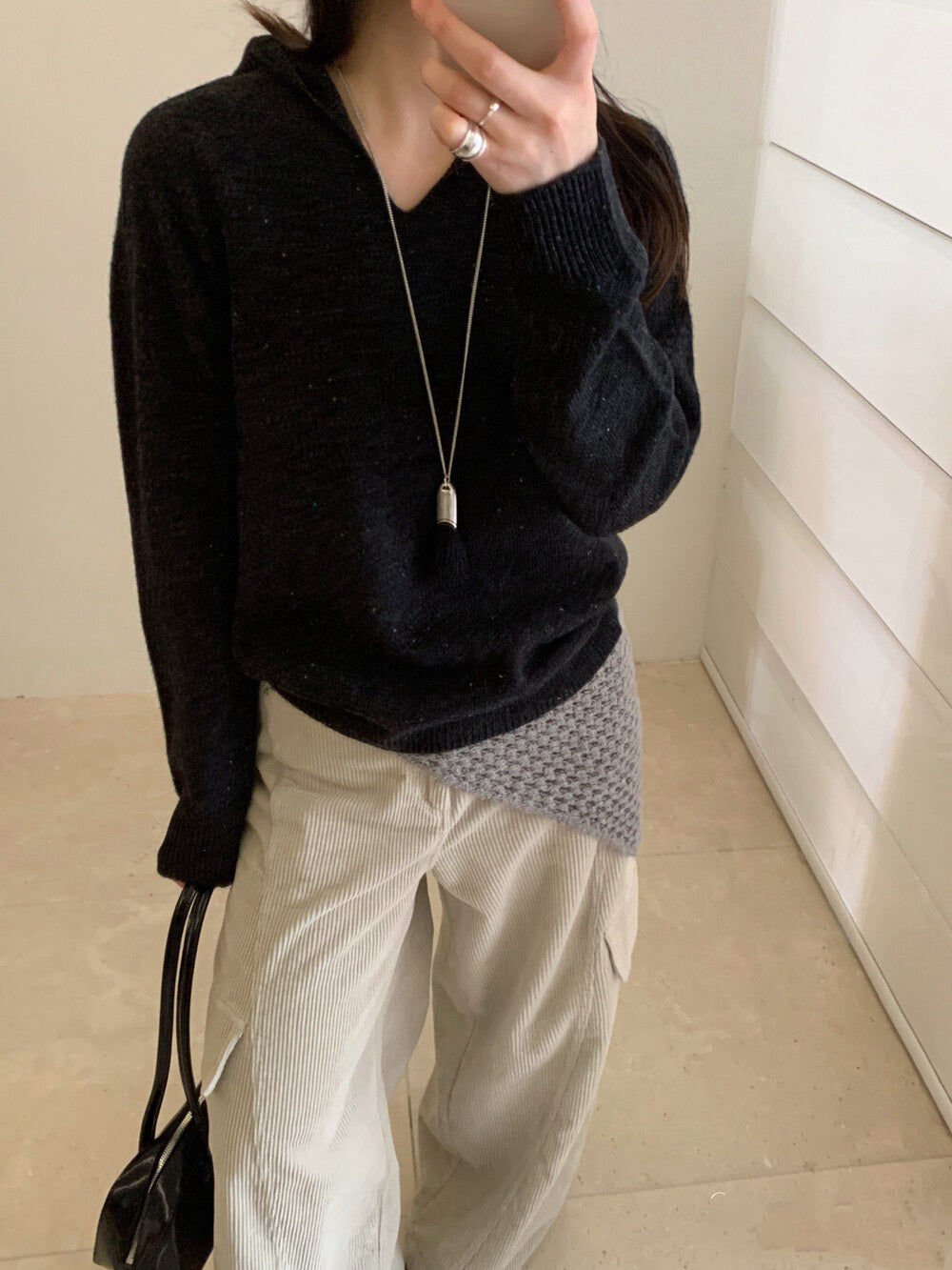 // 98%綿羊毛混點無縫一體連帽NT
