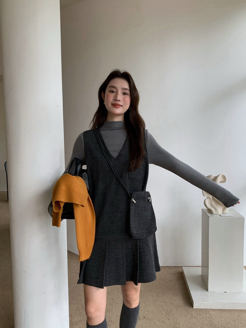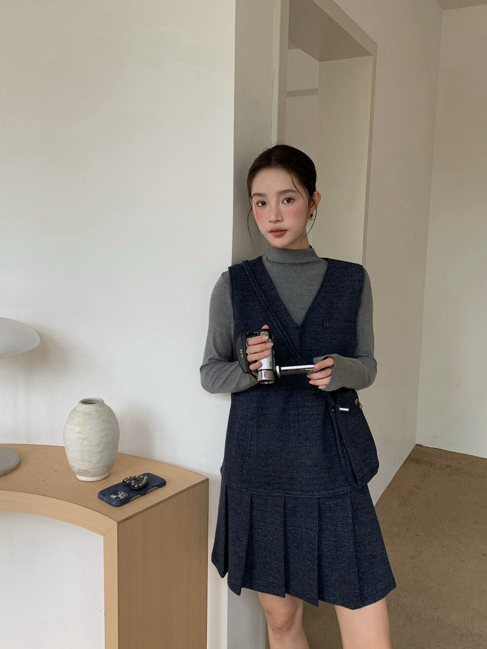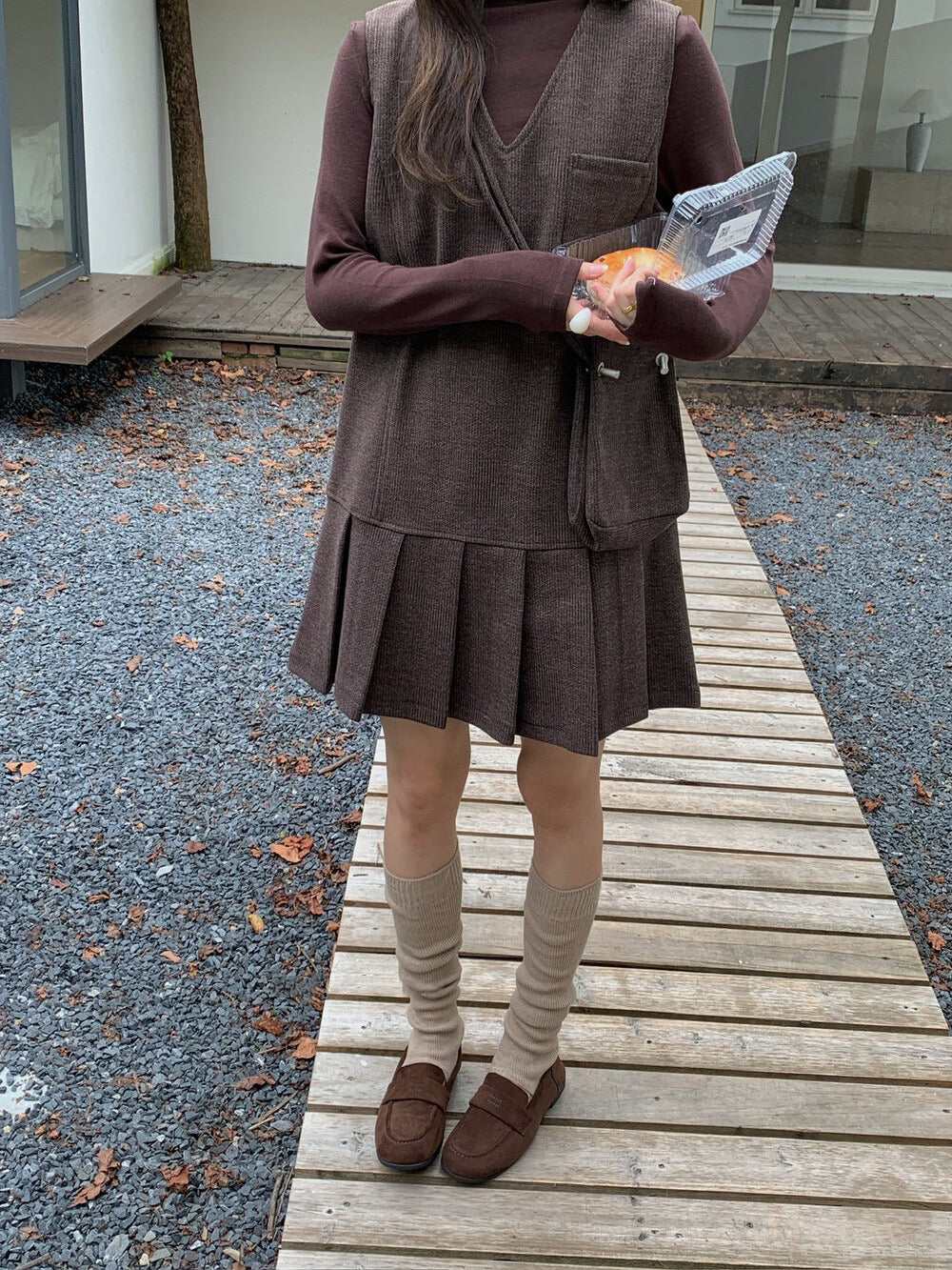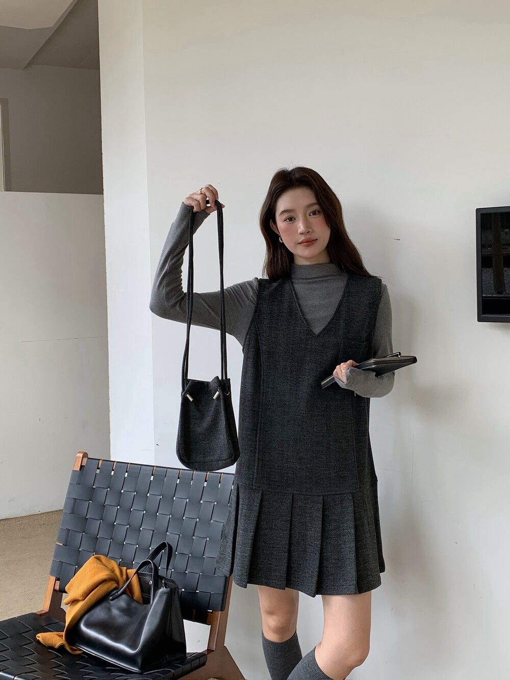 // V領百褶腳背心OPS+高領彈性打底兩件套(連袋仔)