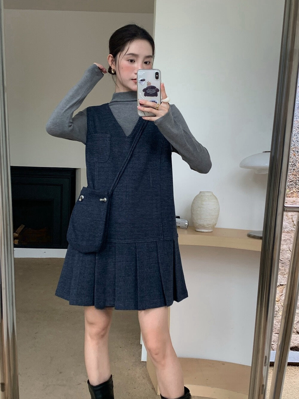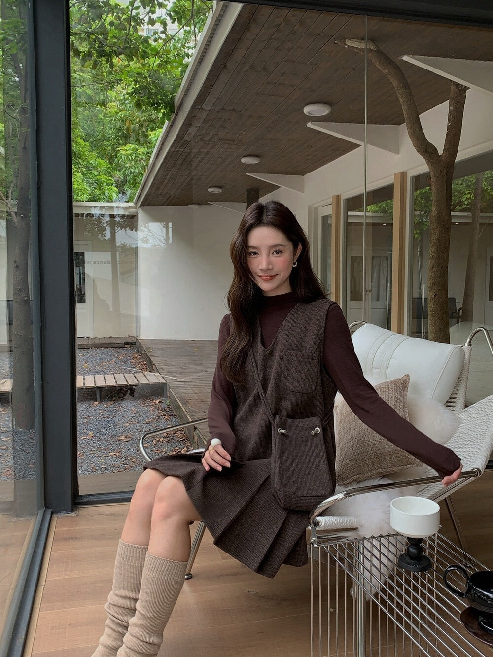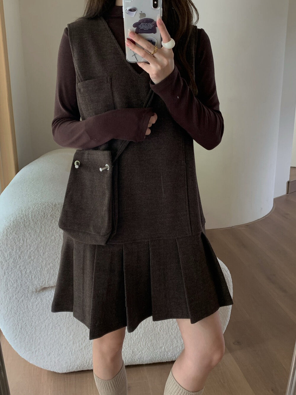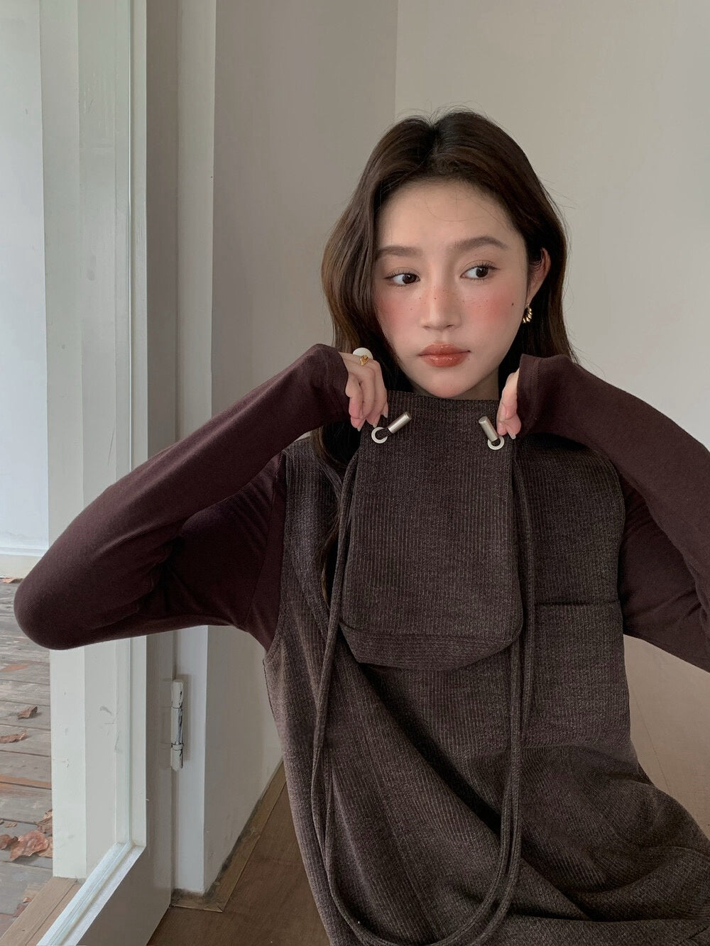 // V領百褶腳背心OPS+高領彈性打底兩件套(連袋仔)
