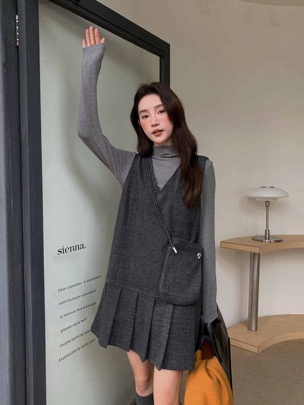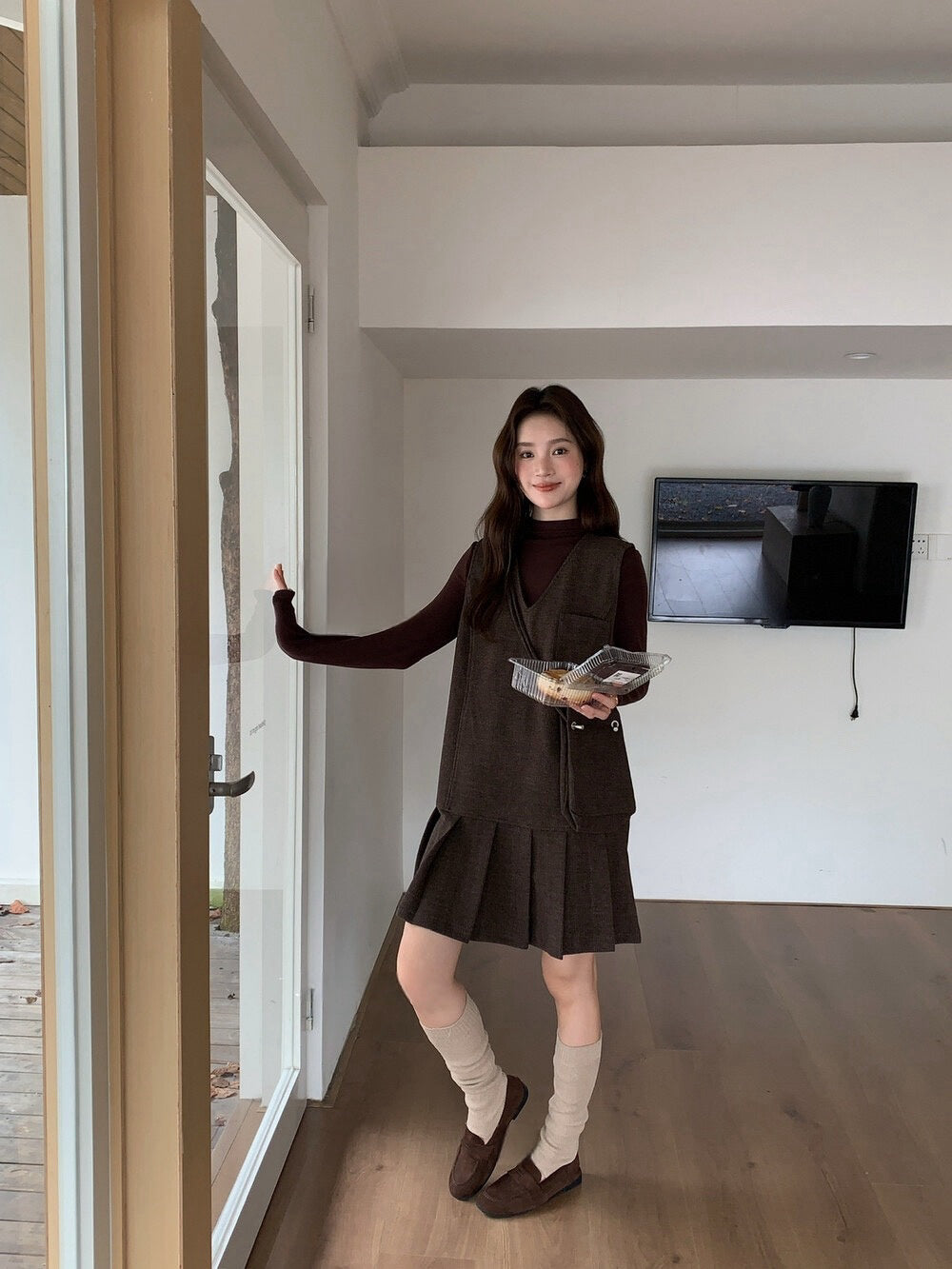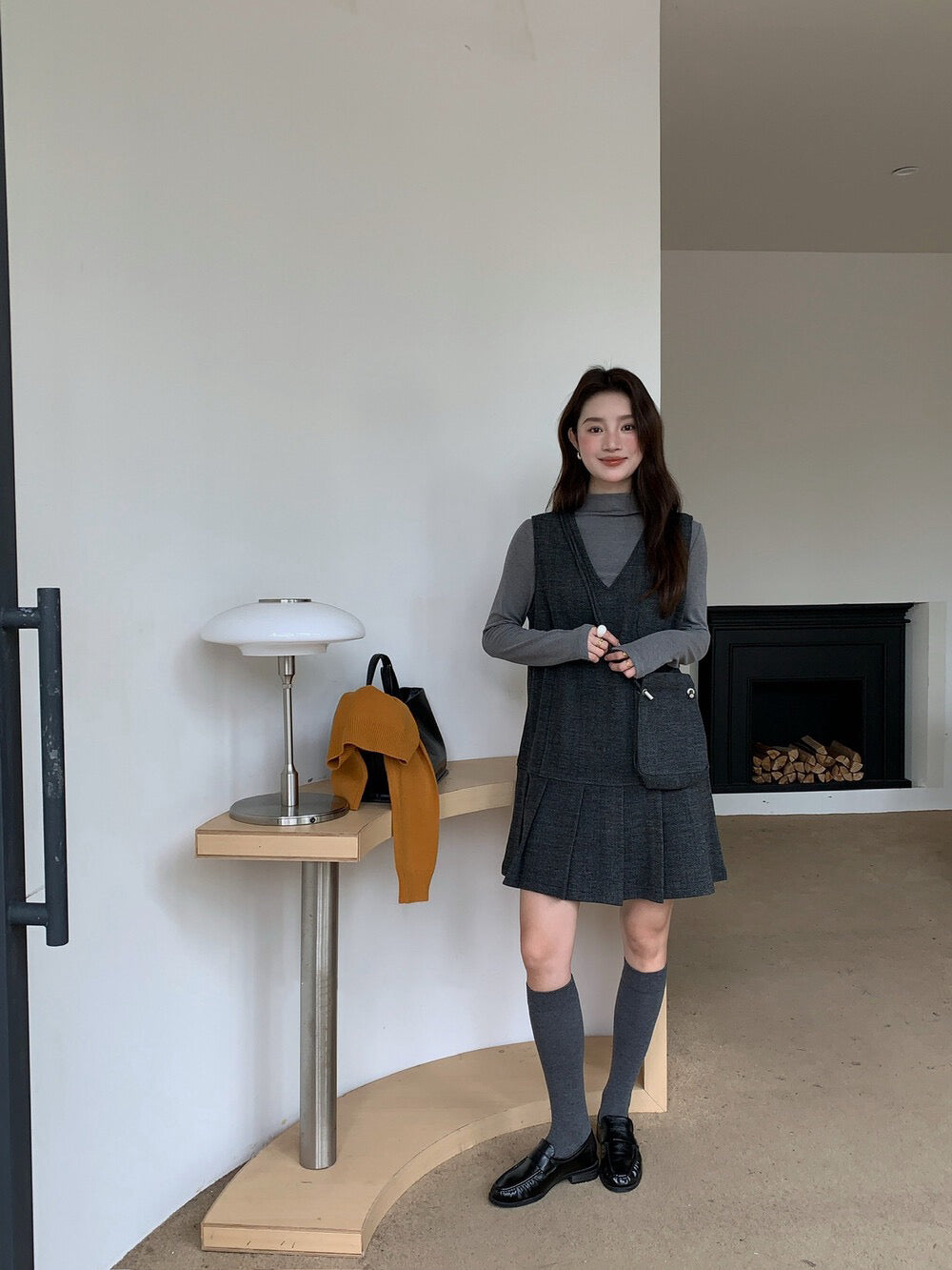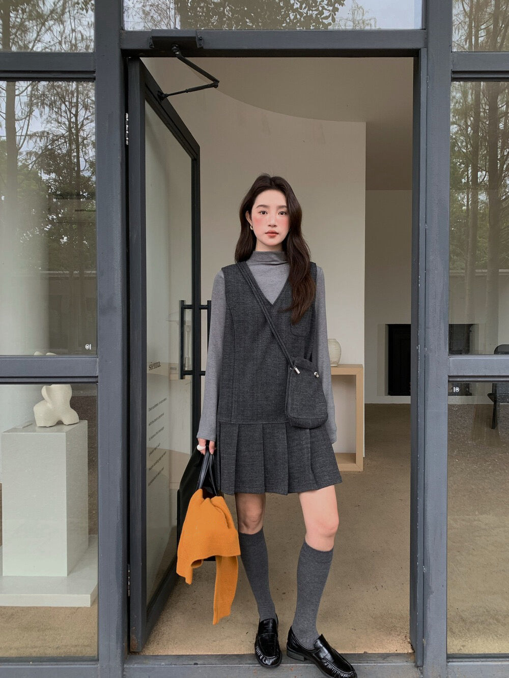// V領百褶腳背心OPS+高領彈性打底兩件套(連袋仔)